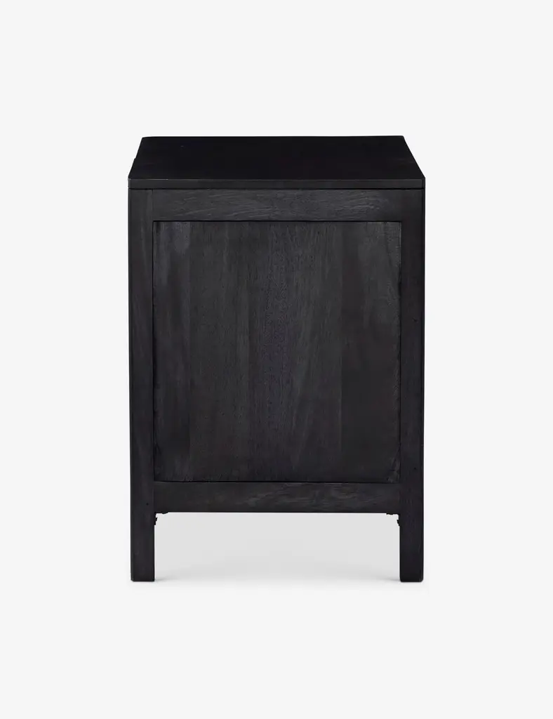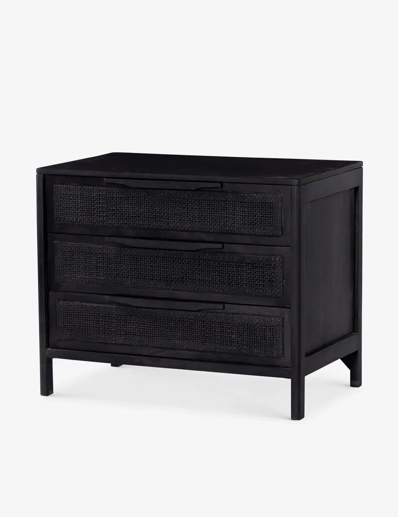 Clean lines and an airy profile bring a cool coastal feel to the Hannah nightstand. We love the classic touch of the woven cane front for its natural texture and warmth. This large nightstand features three drawers for ample storage at your bedsideor it could be styled as a small dresser for a child's room.