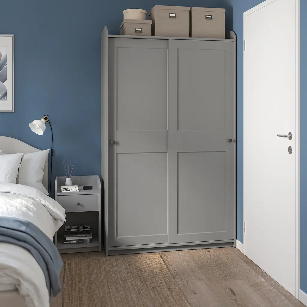HAUGA Nightstand - gray 15 5/8x14 ". HAUGA bedside table is designed to match the other products in the series. Combine this table with the bed, cabinet, chest of drawers and wardrobe to create a harmonious bedroom setting.