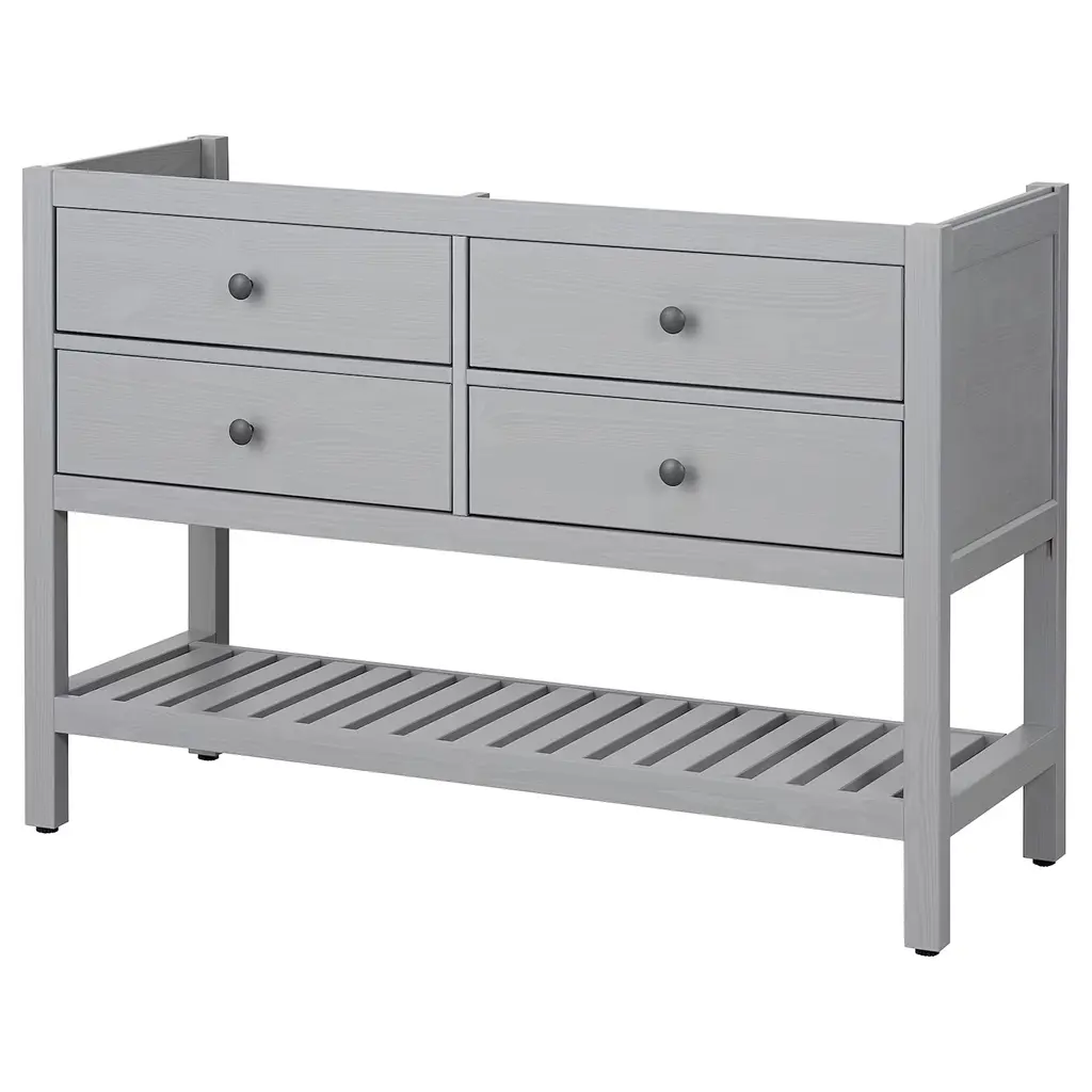 HEMNES 3-drawer chest - dark gray stained 22 7/8x31 1/8 ". Of course your home should be a safe place for the entire family. That’s why hardware is included so that you can attach the chest of drawers to the wall. Coordinates with other furniture in the HEMNES series.