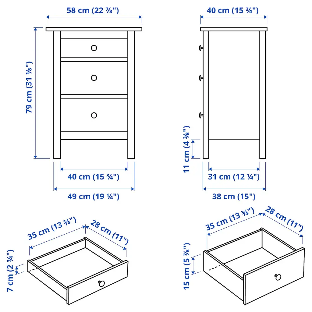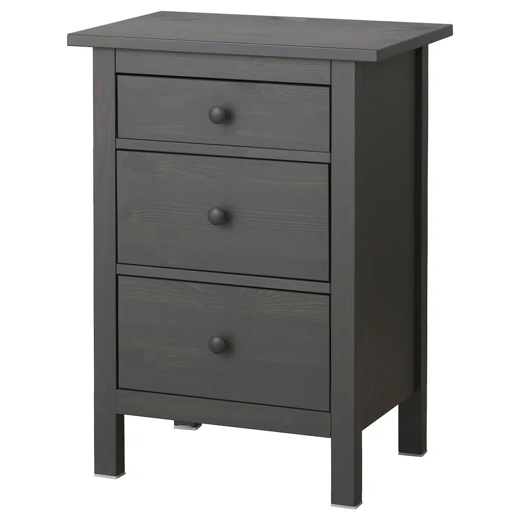 HEMNES 3-drawer chest - dark gray stained 22 7/8x31 1/8 ". Of course your home should be a safe place for the entire family. That’s why hardware is included so that you can attach the chest of drawers to the wall. Coordinates with other furniture in the HEMNES series.