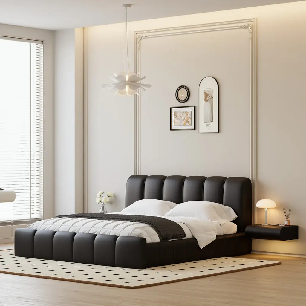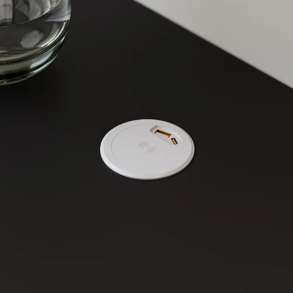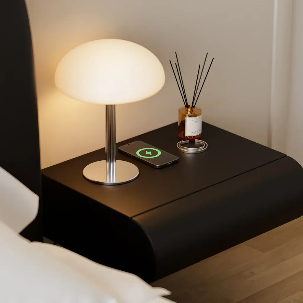 This modern leather nightstand fitted with a wireless charger and a two-drawer body for the necessary storage. It carries just the right design to smartly mix contemporary technology with chic functionality. This nightstand offers a blend of elegance and convenience, making it a practical and chic addition to your sleeping area.