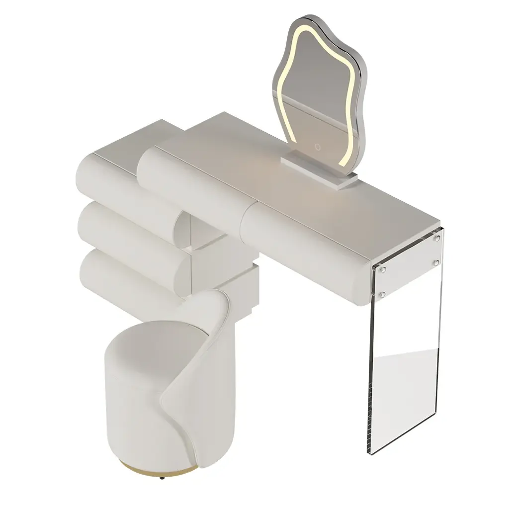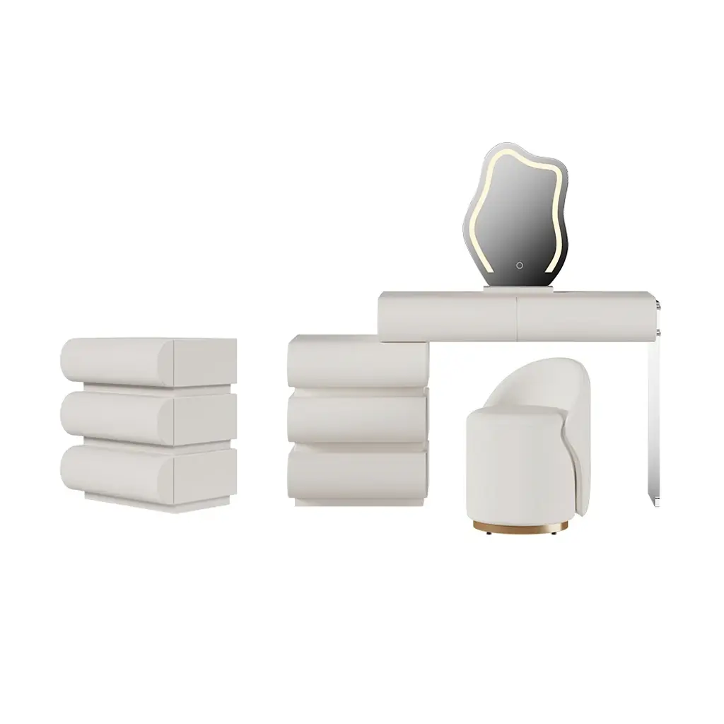 Put a lot of sophistication in your makeup routine with our lovely Vanity Makeup Set. It comes available in chic white PU leather upholstery to add flair to any room. The side cabinet also features huge drawers that provide ample storage for all manner of beauty commodities. This modern leather nightstand fitted with a wireless charger and a three-drawer body for the necessary storage. It carries just the right design to smartly mix contemporary technology with chic functionality. This nightstand offers a blend of elegance and convenience, making it a practical and chic addition to your sleeping area.