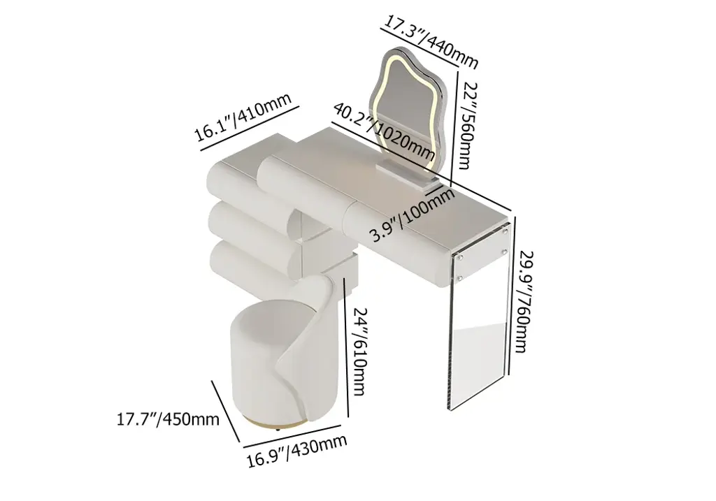 Humply White Leather 3-Drawer Smart Nightstand & Makeup Vanity Set