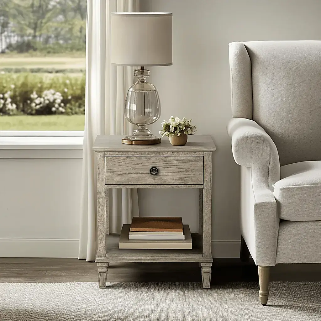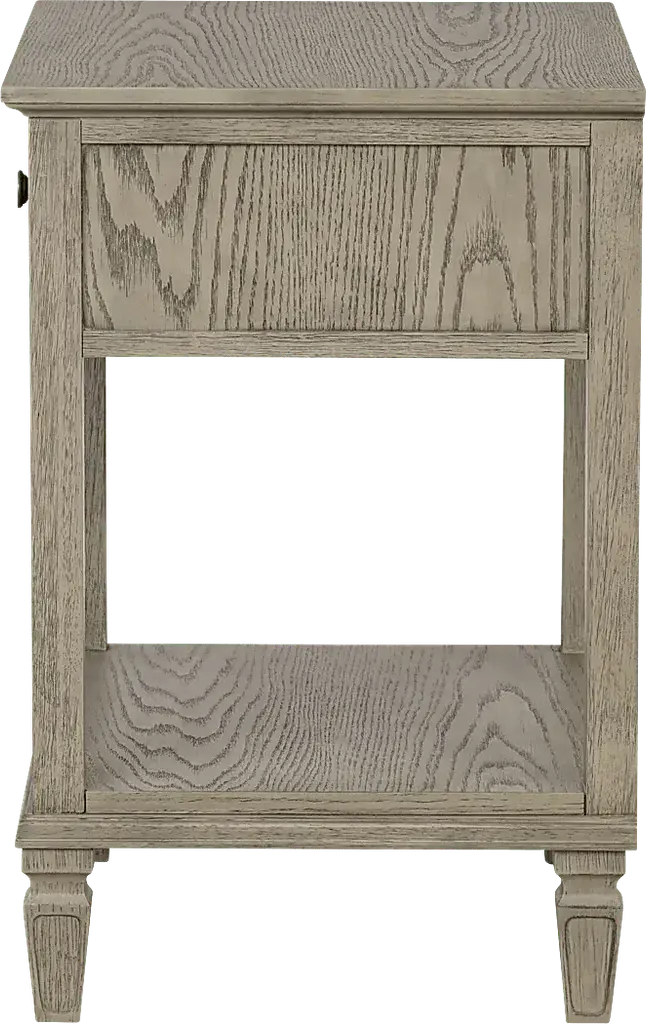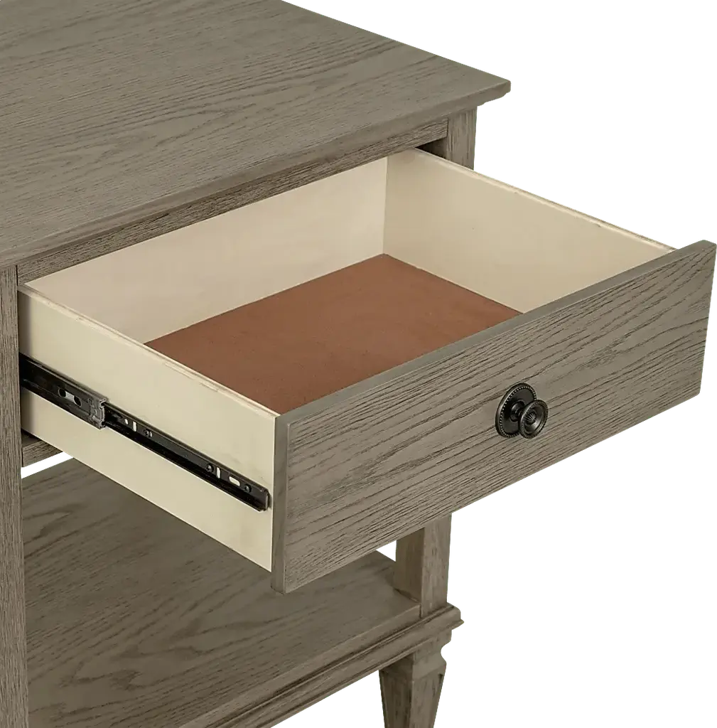 The Iceway I gray nightstand blends timeless design with everyday function. Made of wood with a hand-applied finish, it features a smooth-gliding drawer with a metal knob and an open lower shelf to keep items organized. Visible wood grain and tapered legs add warmth and charm. Use it as a small nightstand, end table, or side table in the bedroom, living room, or beside a couch. Its versatile style fits traditional, farmhouse, or coastal homes. Complete your space with this elegant accent. Customer assembly is required.