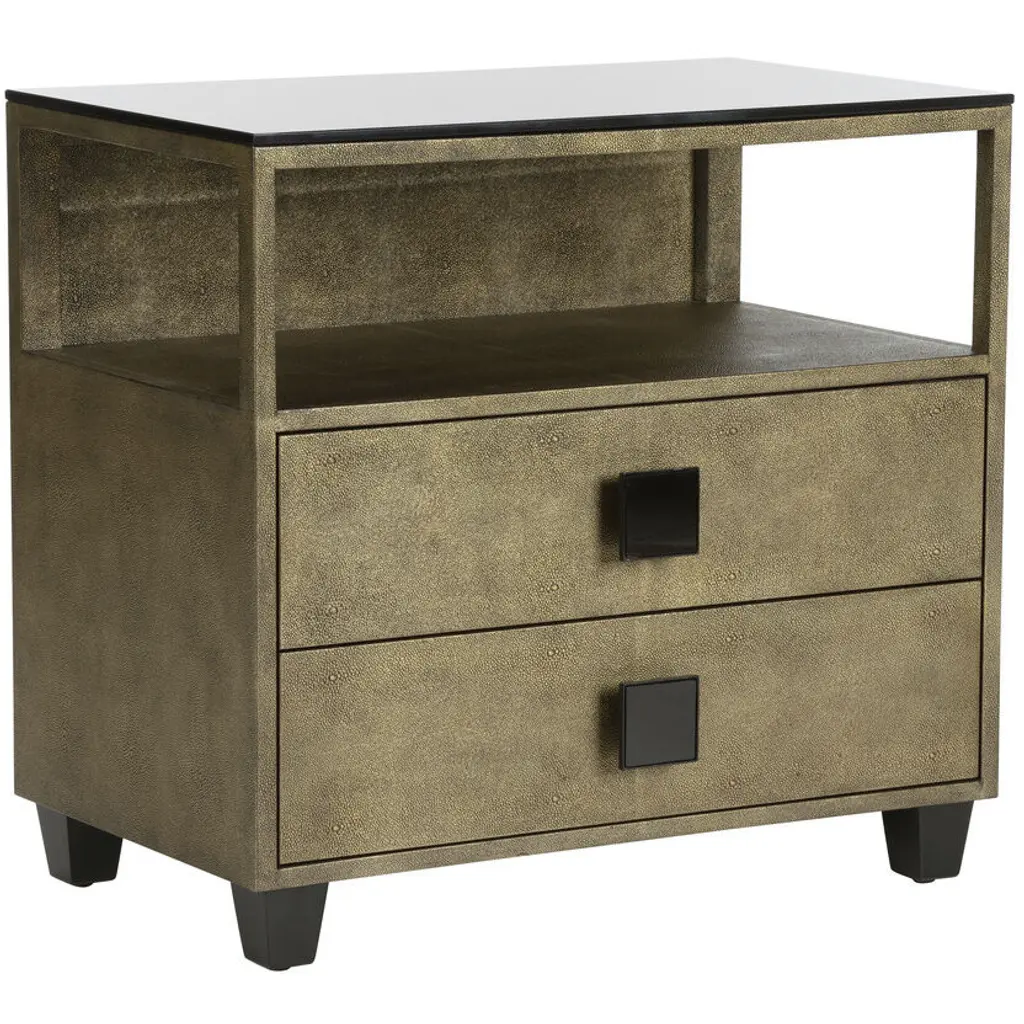 Iconic Bedside Table With Beveled Drawers In Coal Black Shagreen By R&y Augousti