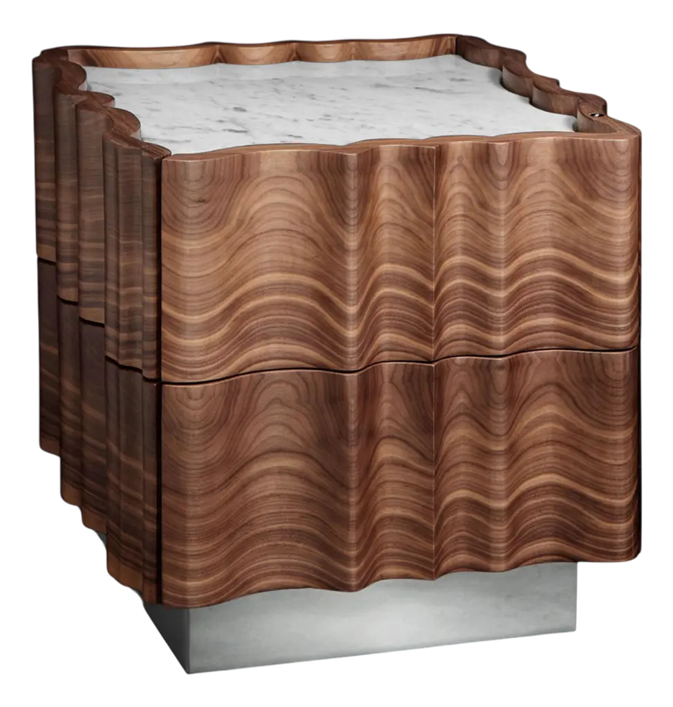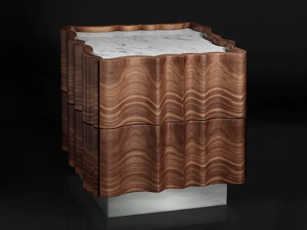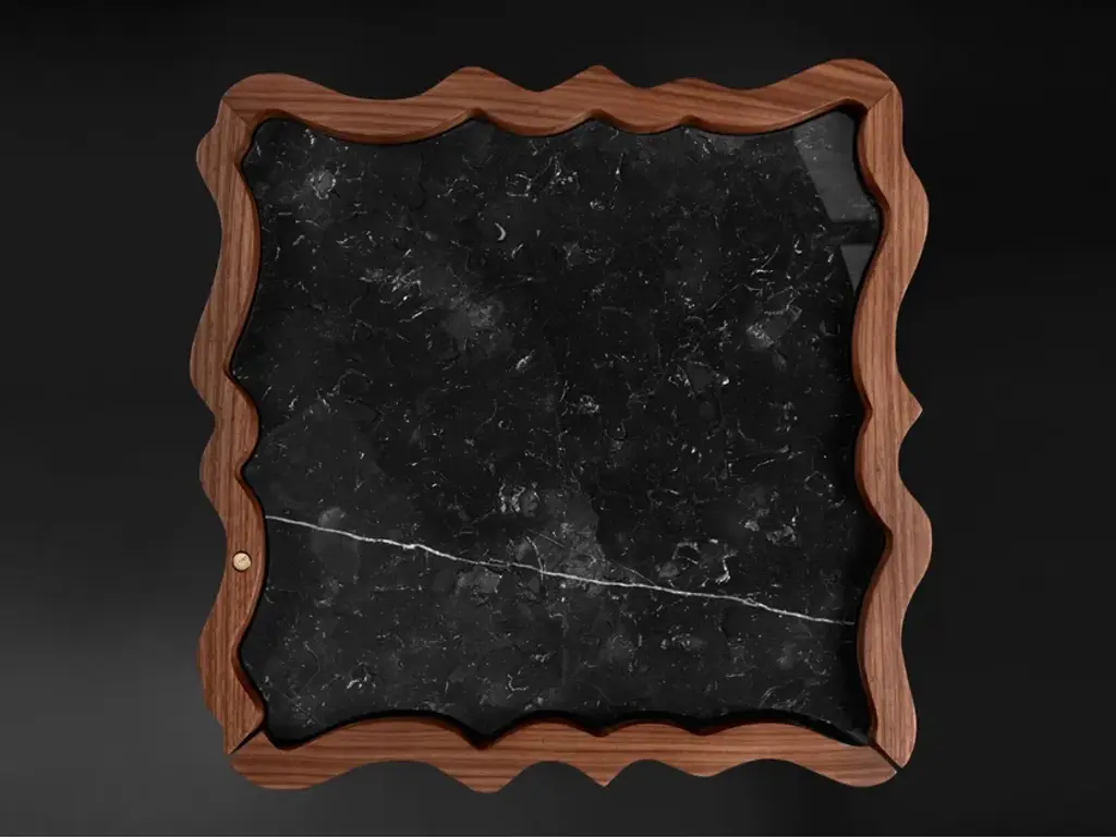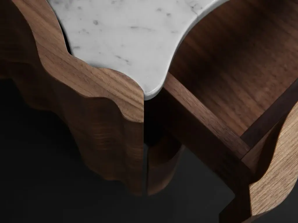 Classic, flowing and gentle contours, Il Pezzo 2 gives its own reading of time, old pieces inspiring familiar and comforting sensations. It’s completely made of solid American walnut; the shape of the structure allows the wood to amaze by showing off its colours and grain. The top is a beautiful slab of white Carrara or black Marquinia marble while the base, made of brass, is available in different finishes. The wood is treated with natural oil that protects it but at the same time allows it breathe, leaving the extraordinary feel of this beautiful material unchanged to the touch. A small brass cylinder inserted in every piece, containing serial number, seals the authenticity and uniqueness. Available in custom sizes and finishes.
