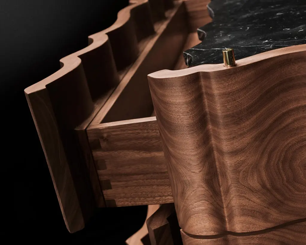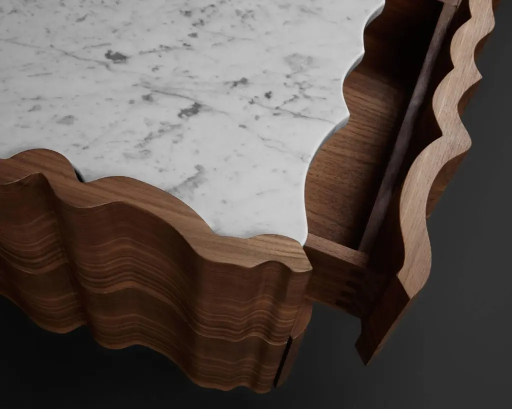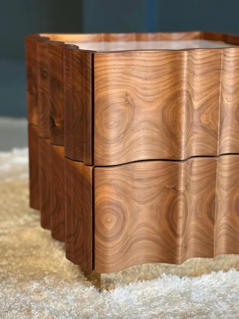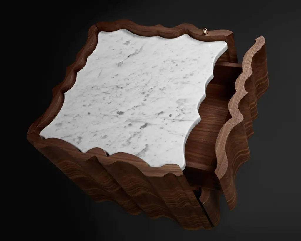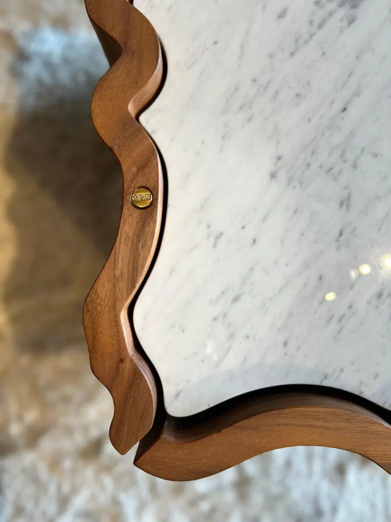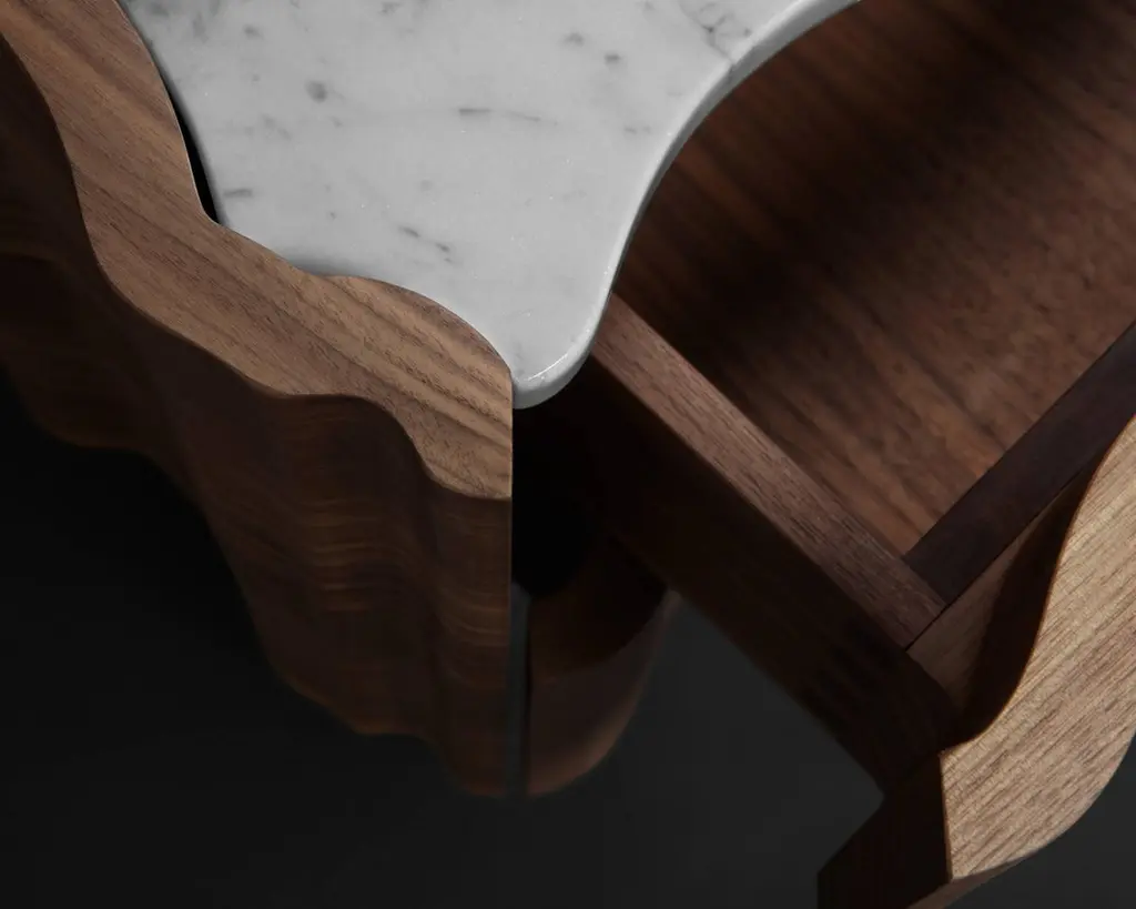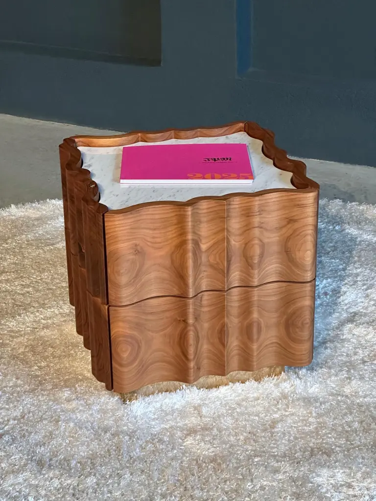 Classic, flowing and gentle contours, Il Pezzo 2 gives its own reading of time, old pieces inspiring familiar and comforting sensations.Crafted entirely from solid American walnut, the structural design showcases the wood's captivating colors and grain patterns. The wood is treated with a natural oil that both protects and allows it to breathe, preserving the extraordinary tactile sensation of this exquisite material. The tabletop features a stunning slab of either white Carrara or black Marquinia marble, while the base, crafted from brass, is available in various finishes.Each product shows the “Missing Piece” (“Pezzo Mancante” in Italian): a small brass cylinder containing a unique serial number, guaranteeing its authenticity and individuality.Custom sizes and finishes are also available to suit every preference.All our masterpieces are meticulously crafted in our Atelier located in Florence, Italy, from a small team of people driven by a shared passion for quality and beauty. We constantly strive to create unparalleled works of art, where each piece is a testament to our commitment to craftsmanship and innovation.Structure: solid walnutTop: Carrara marbleBase: gold finish brassTwo drawersSize: 50 x 50 x H 49 cm - 19.6" x 19.6" x H 19.3".