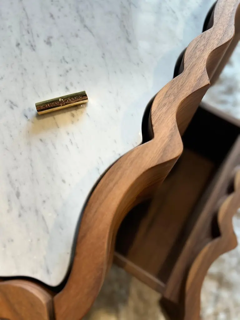 "Il Pezzo 2 Nightstand" Night Table - Solid Walnut - Carrara Marble - Brass