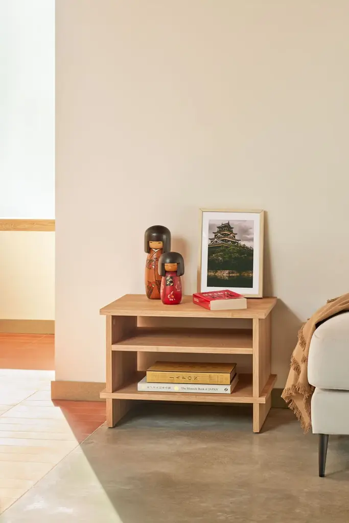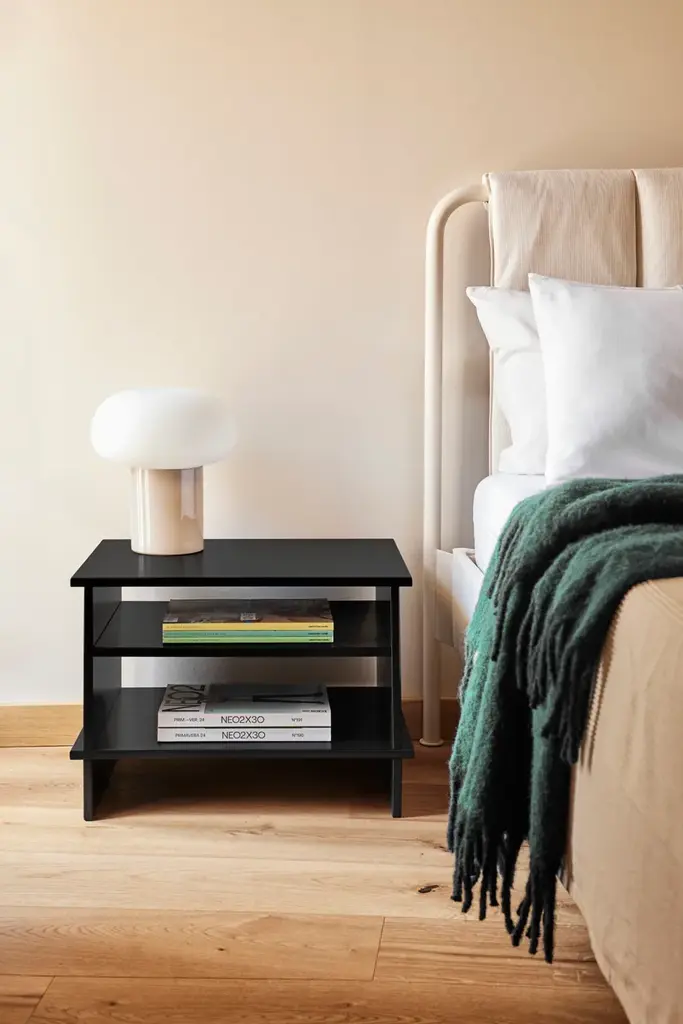 Corvo is a bedside table made of lacquered MDF.Inspired by the essence of Japanese design, Inari reflects a perfect balance between functionality and minimalist aesthetics. Inari’s variety of finishes ranges from warm, organic tones to more neutral and refined options.The Inari collection is inspired by an open storage concept that combines functionality and aesthetics, providing a lighter and more minimalist look.
