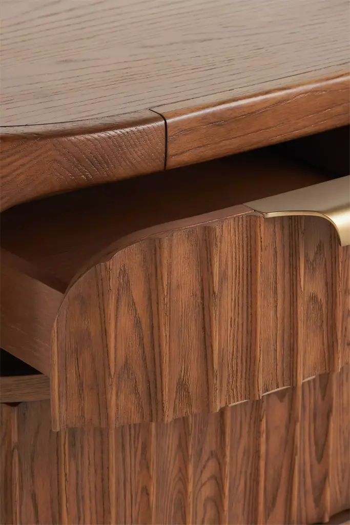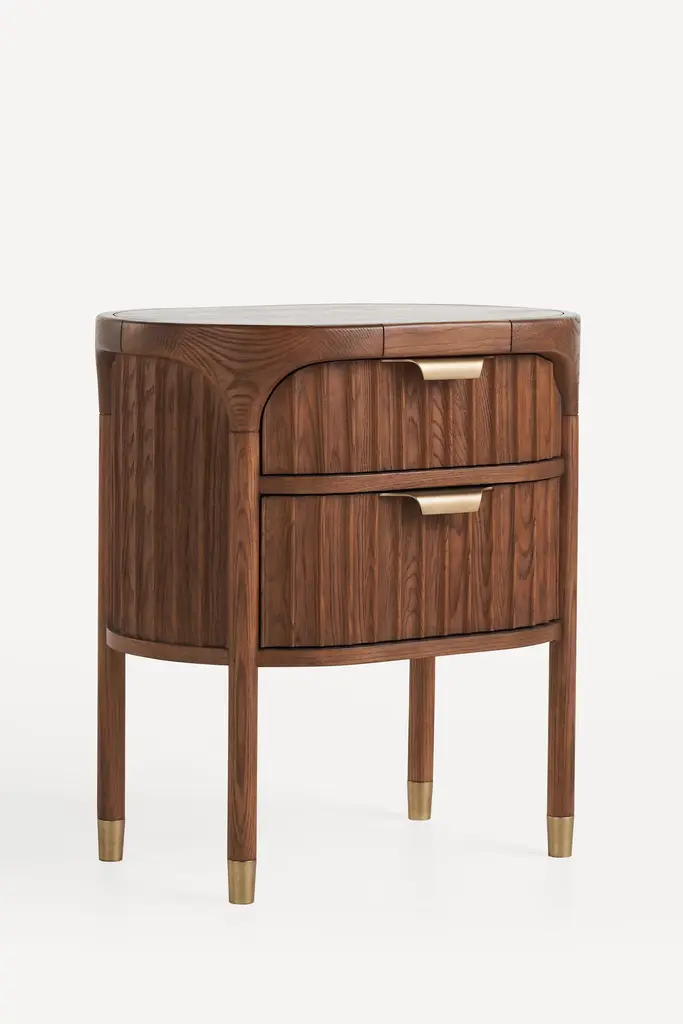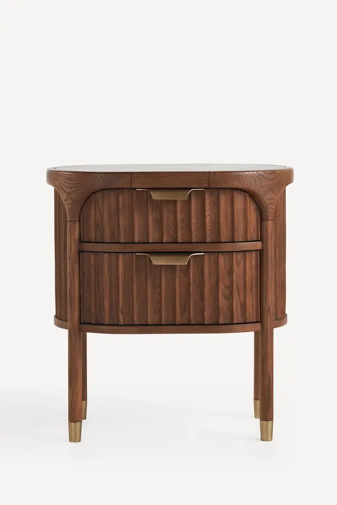 A classic silhouette, the Isla Nightstand gets an aesthetic upgrade with decorative steel detailing, rounded corners, and textural wood alongside two drawers for optimum bedside storage. For ordering assistance and more, please [contact us](https://www.anthropologie.com/help/contact-us#contact-us-section-2). For aesthetic advice and tips to help decorate your space, enjoy our complimentary [home styling services](https://www.anthropologie.com/help/personal-styling-home-decor). For more information on the materials and techniques of this piece, [click here](https://www.anthropologie.com/help/material-care-guide).