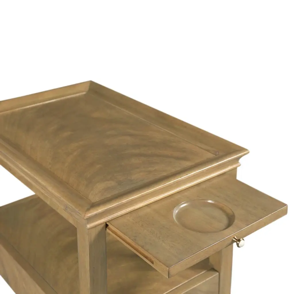 Designed for smaller spaces, this night table features one drawer, a finished back, and one open fretwork shelf.