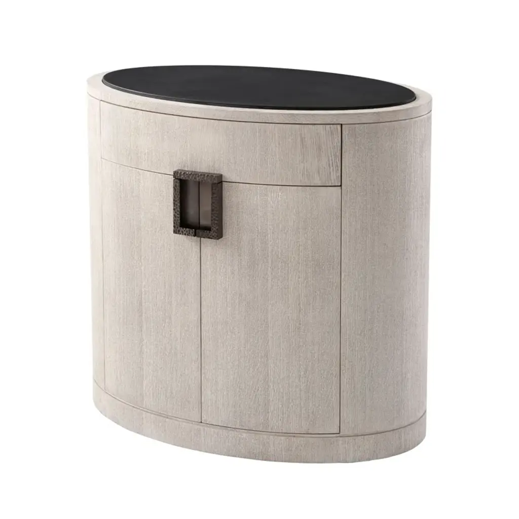 This nightstand is a seamless blend of form and function. Crafted from solid wood, it showcases the meticulous craftsmanship that Theodore Alexander is renowned for. Its soft-close drawer offers a whisper-quiet experience, making it a sophisticated addition to your bedroom. Whether placed beside your bed or in a cozy reading nook, this piece enhances your space with its timeless appeal.