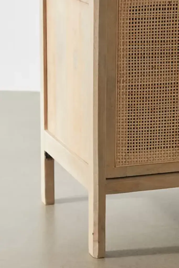 Modern-boho nightstand made from mango wood with a hinged door topped with a woven cane panel that swings open to reveal a bisected, shelved interior. Choose from a Right-Opening nightstand with door hinges placed on the right edge or a Left-Opening nightstand with door hinges placed on the left edge, designed to suit your space perfectly. **Features** \- Statement boho nightstand \- Crafted from mango wood and paned with woven cane \- Customizable to your space with Right or Left-Opening door options **Content + Care** \- Mango wood, cane \- Wipe clean \- Imported **Size** \- Dimensions: 20"l x 16"w x 23.5"h \- Shelf dimensions: 18"l x 13"w \- Leg height/clearance: 5.5" \- Weight limit: 121 lbs \- Weight: 30.86 lbs \- Shipping package dimensions: 23.5"l x 19.5"w x 28"h \- Shipping package weight: 43.43 lbs