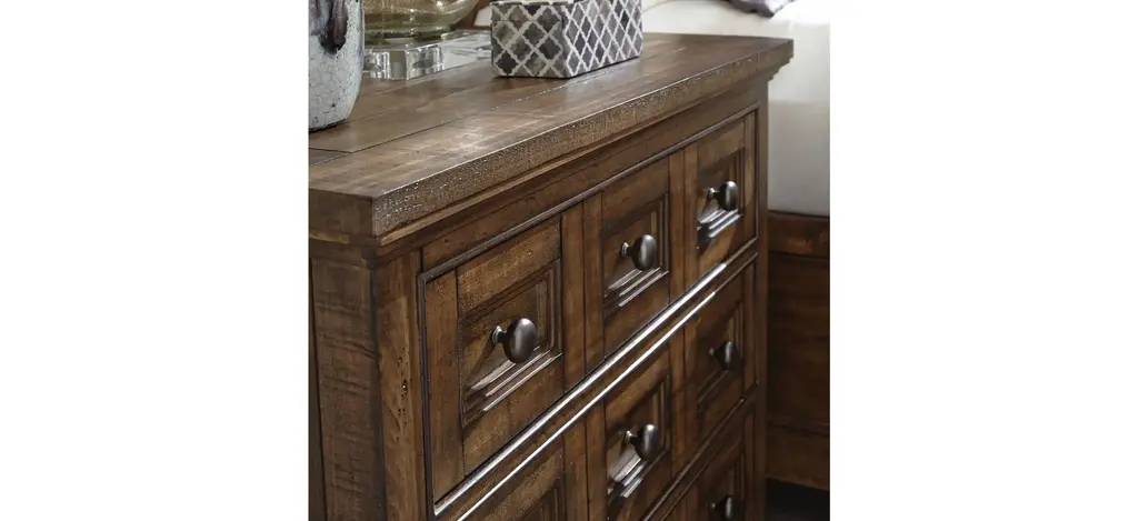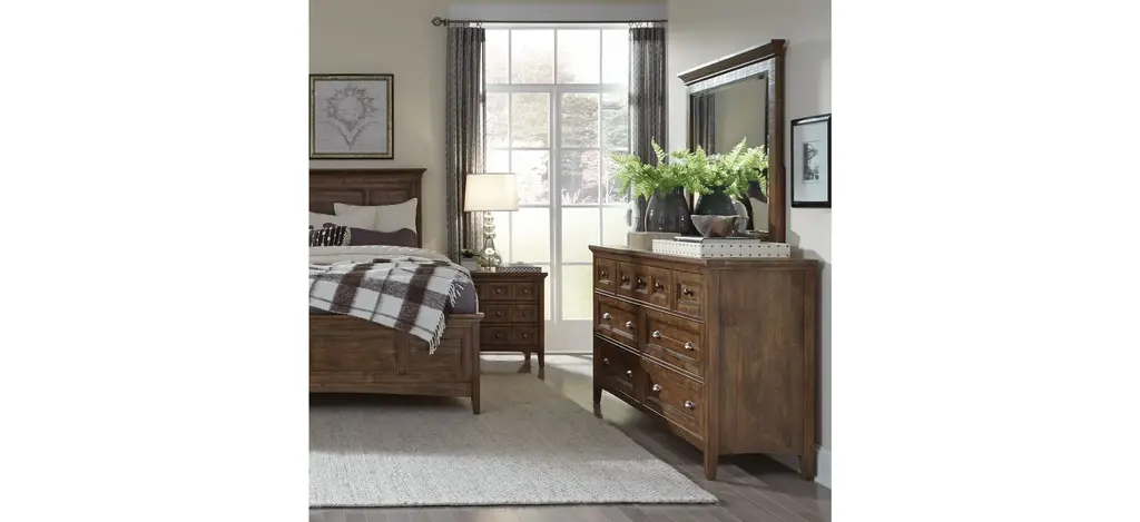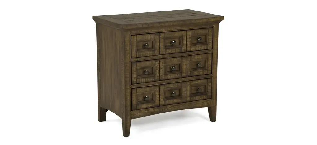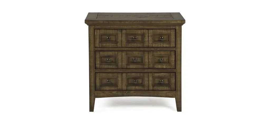 With the Ivy Ridge Nightstand you'll enjoy a yummy toasted nutmeg finish on pine veneers and solids, accented by aged bronze hardware. Whether in a second home, a casual city abode, or in the suburbs, this nightstand offers beaded, framed panel drawers over straight shaker inspired legs and drawers for storage. The nightstand offers a tailored respite.