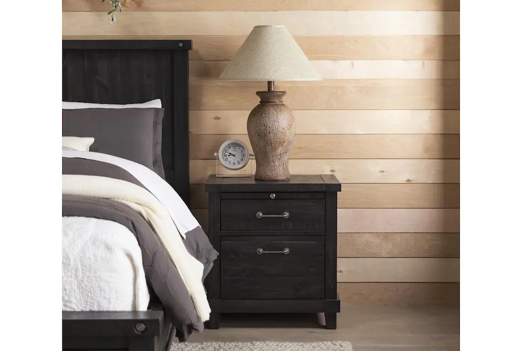 The Jaxon Espresso Black Brown Wood Tall 28" 2 Drawer Nightstand with USB is the perfect addition to your bedroom. Crafted from solid pine, this nightstand offers both functionality and style. With its industrial design and practical features, it ensures you have everything you need right at your bedside.