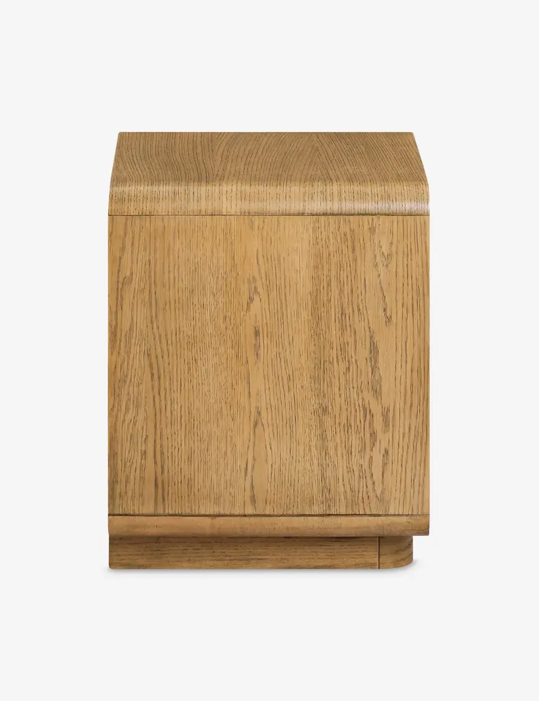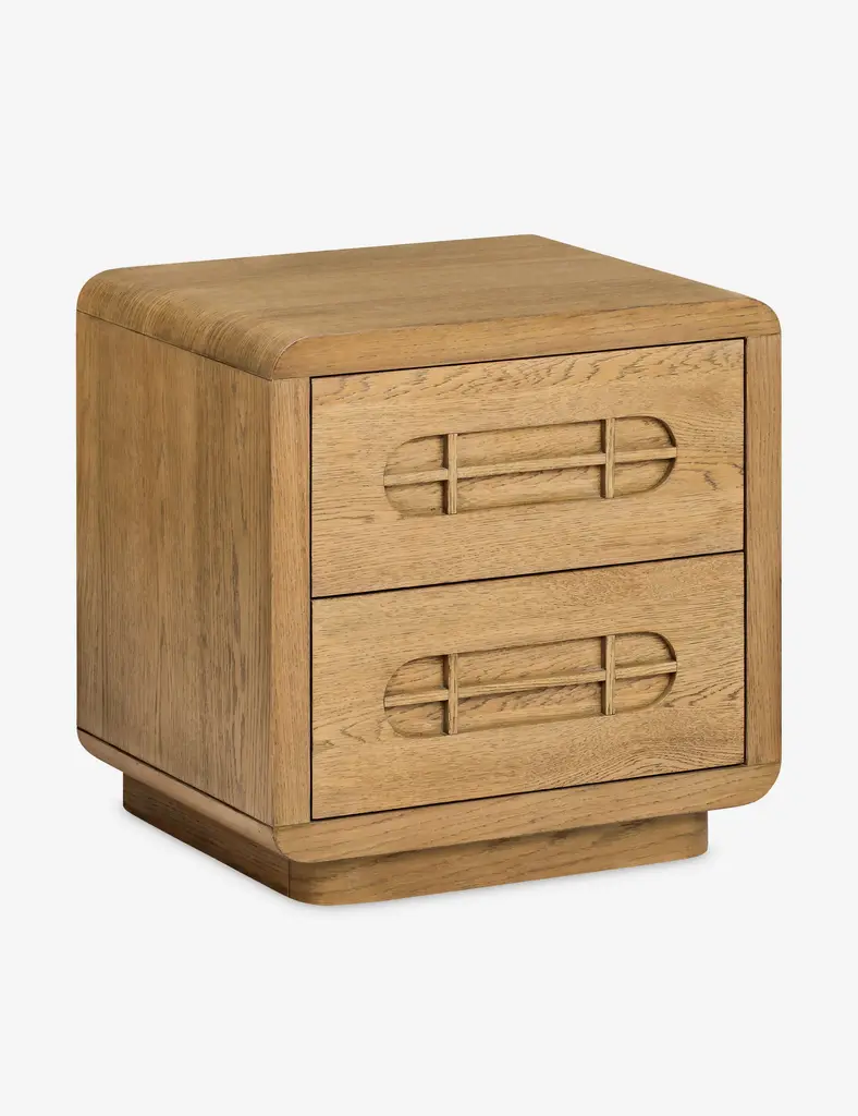 Bring vintage character to your bedside with this oak nightstand. The soft-lined silhouette features beautiful woodwork and a light finish, highlighting the natural grain. With two soft-close drawers, this modern nightstand offers spacious storage with a timeless touch of warmth.