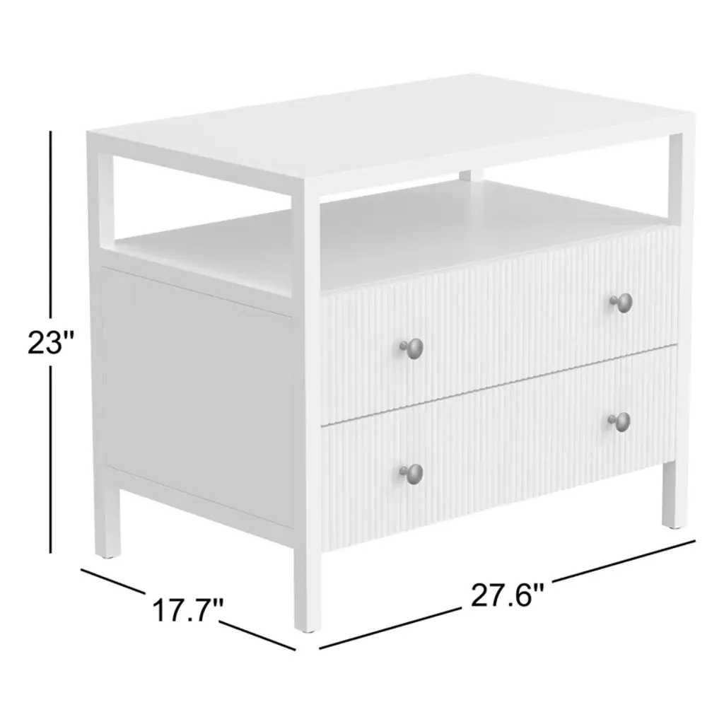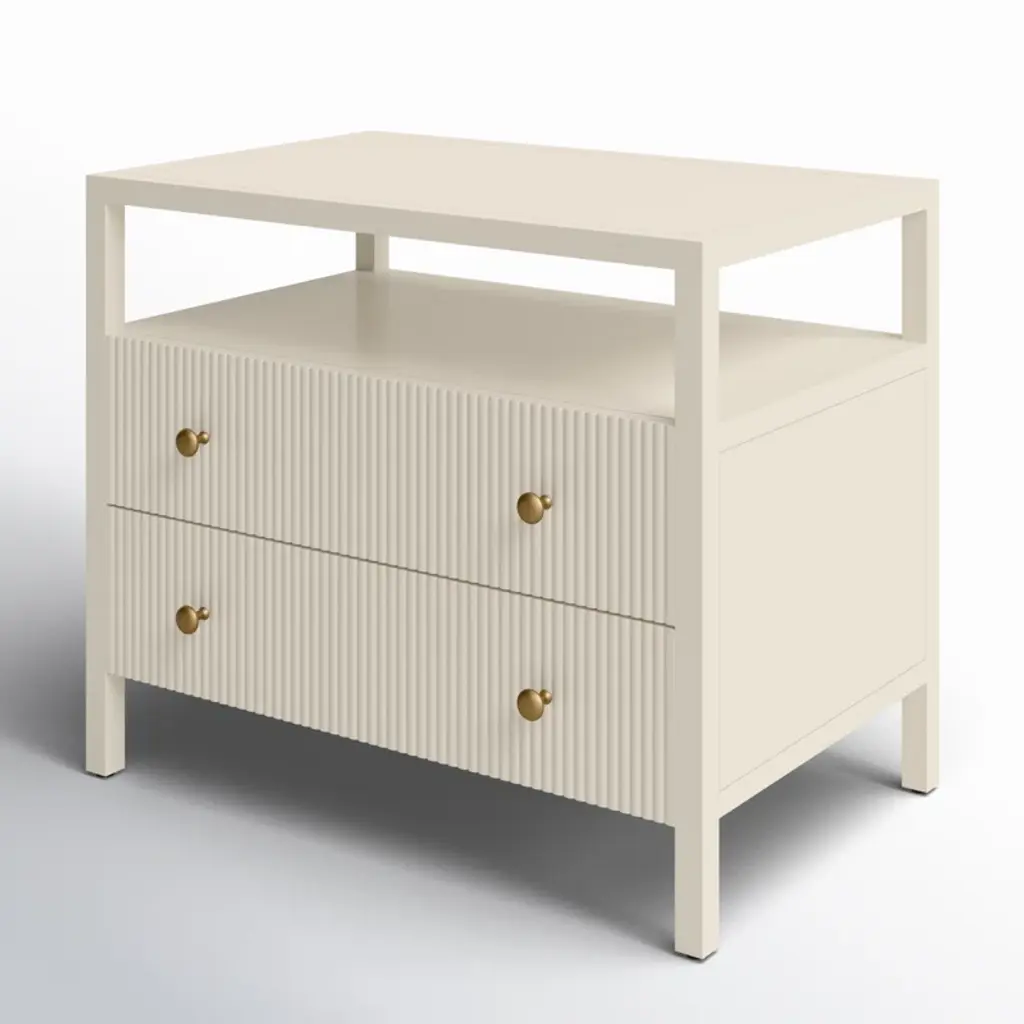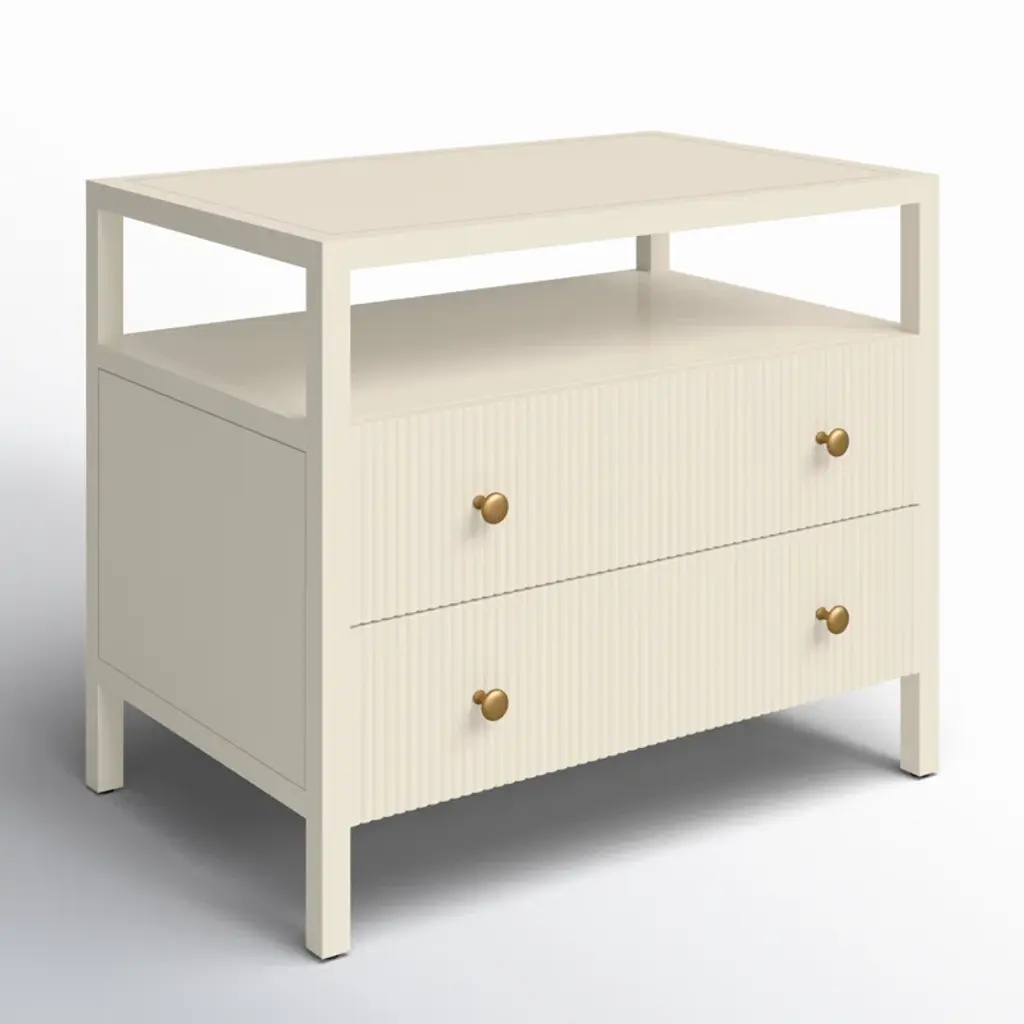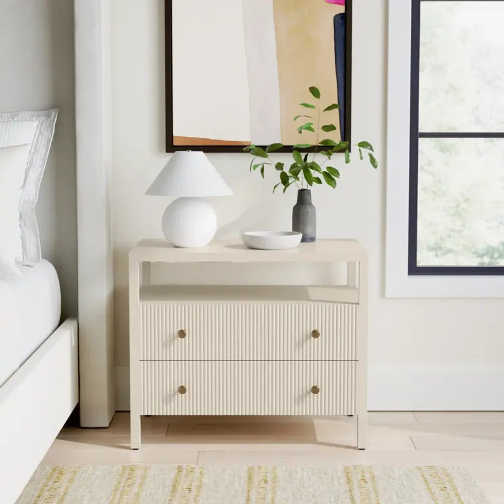 Complete your bedroom ensemble with the Jennette nightstand. With its ribbed drawer face fronts and coconut milk finish, it exudes a chic, farmhouse vibe while providing convenient bedside storage. Quick and easy assembly, along with included furniture leg glides and anti-tipping hardware, ensures stability and peace of mind.