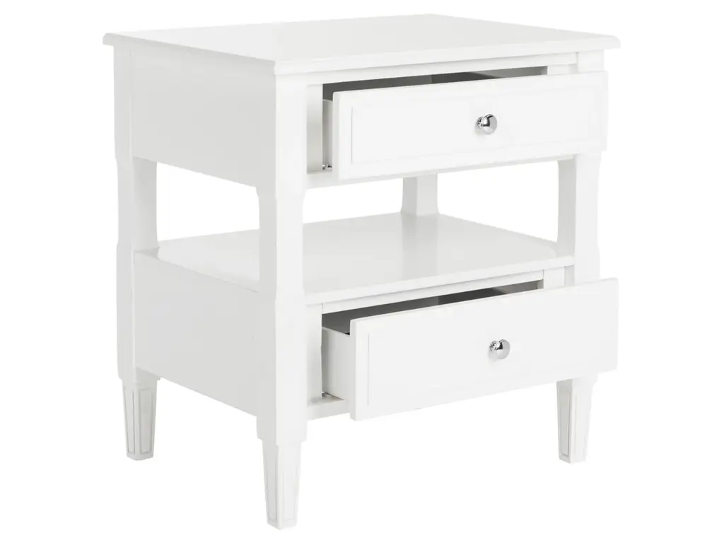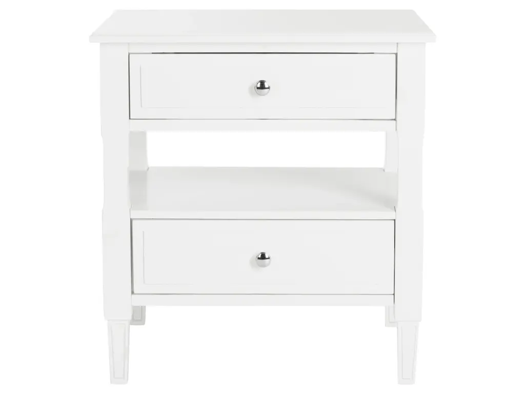 An impromptu retreat to the heart of Burgundy inspired the Jenson two-drawer nightstand. A fine iteration of French country living, this transitional piece showcases delicately crafted wood detail on its legs. Stylish silver pulls elevate the white finish. Drawers add layers of storage space.