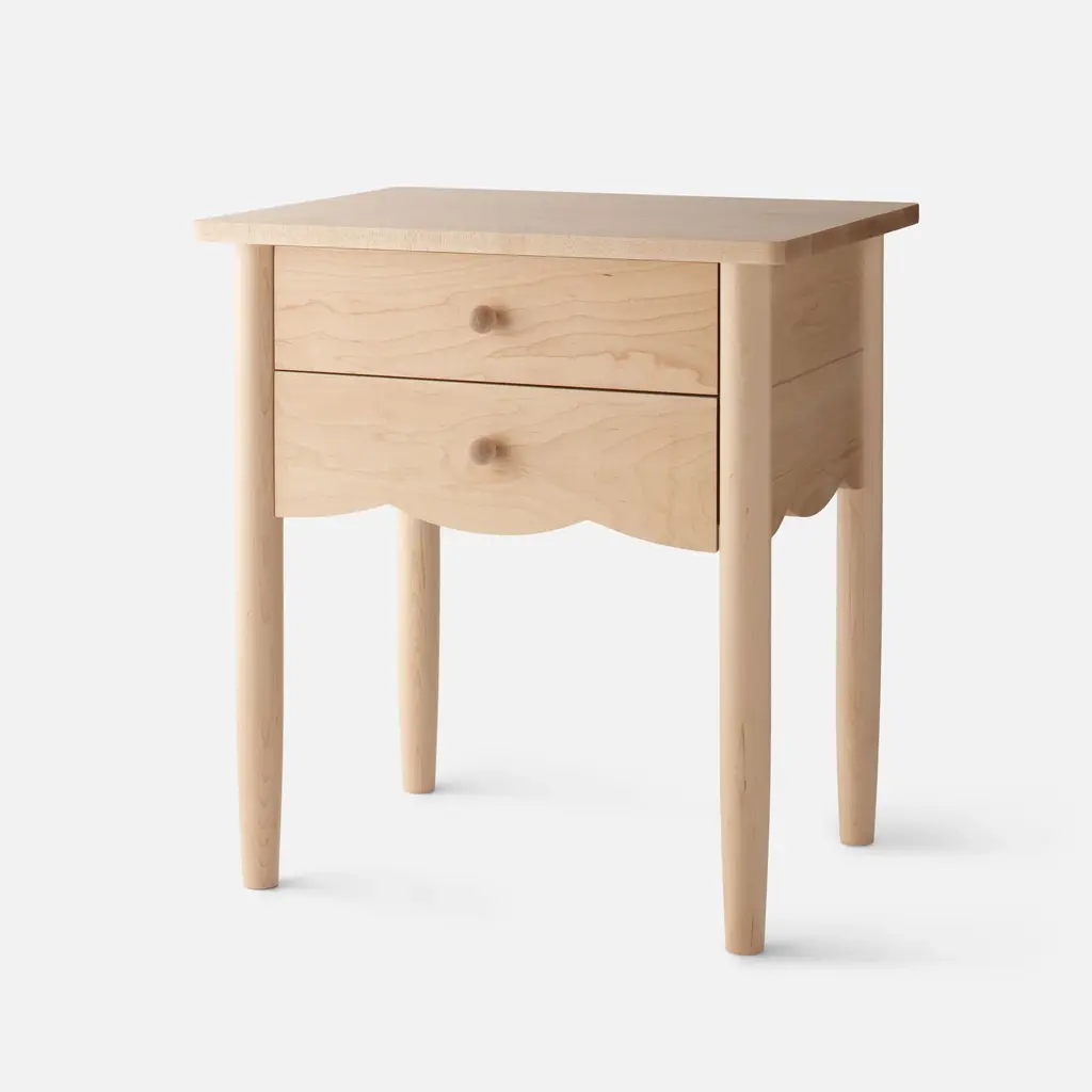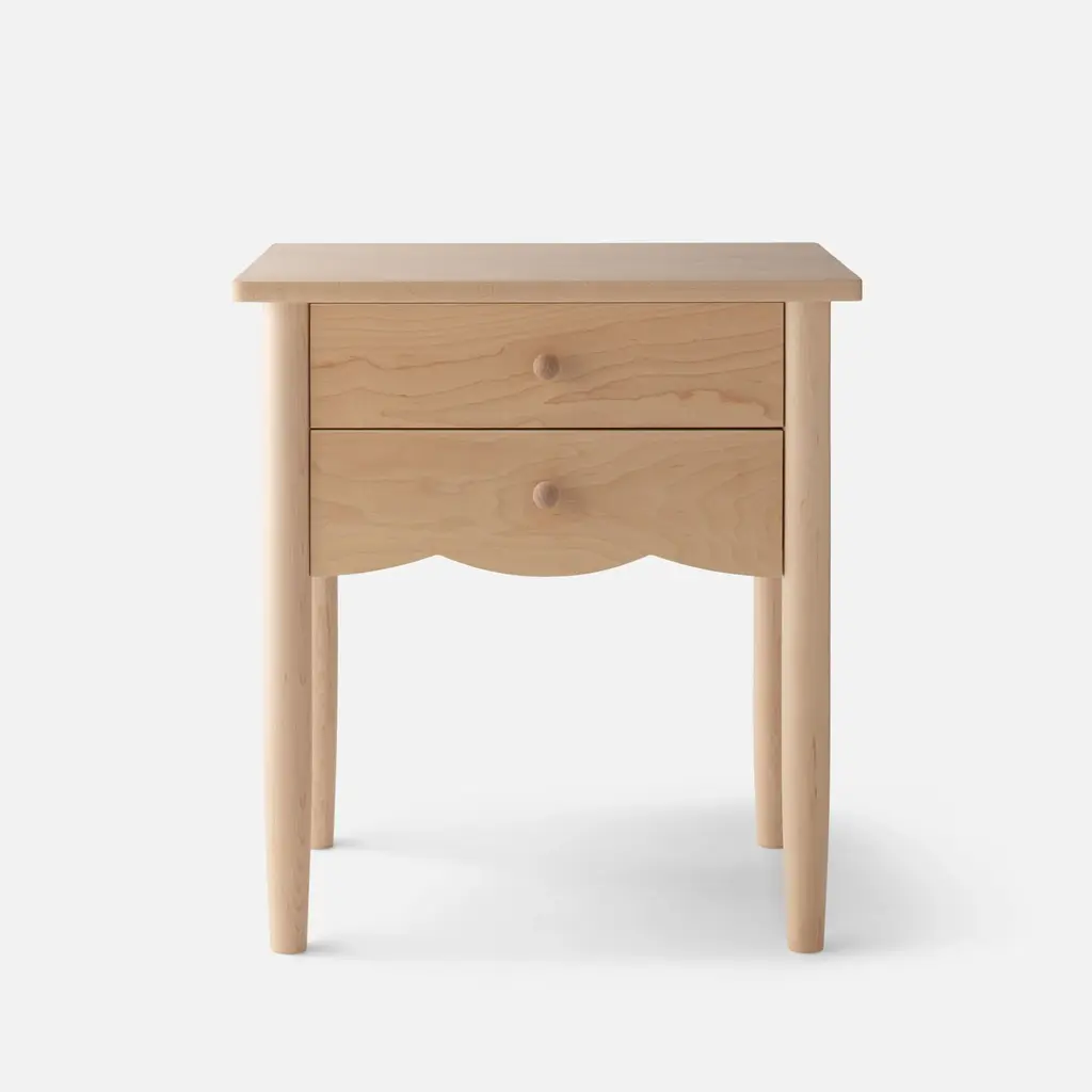 Beautiful in its simplicity, the June nightstand is handcrafted by artisans in the foothills of the Allegheny mountains. It’s inspired by the iconic style of the American Shaker movement, with scalloped aprons and sturdy wood construction that are sure to add character to your bedside.