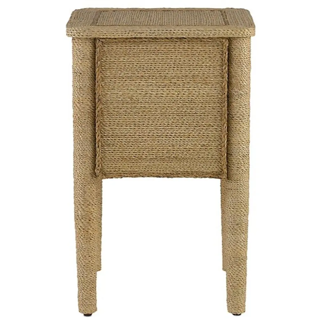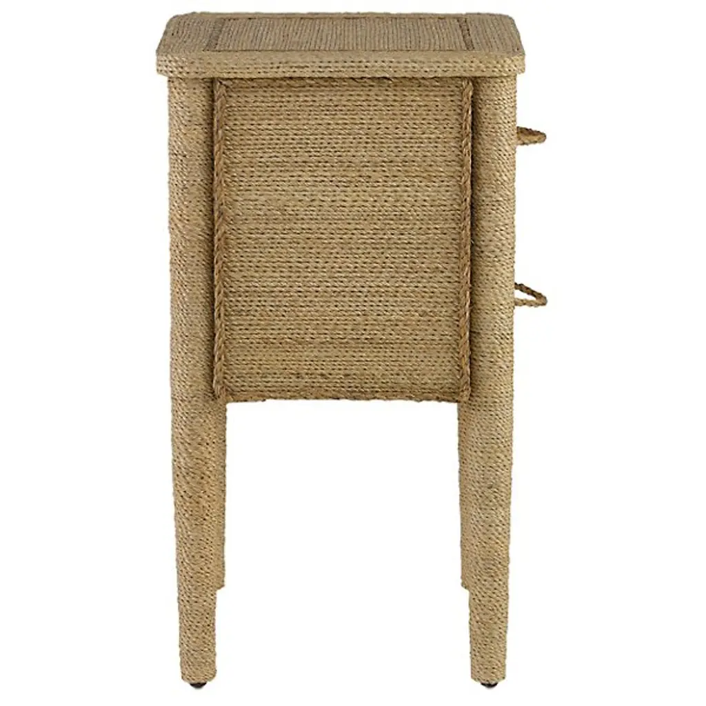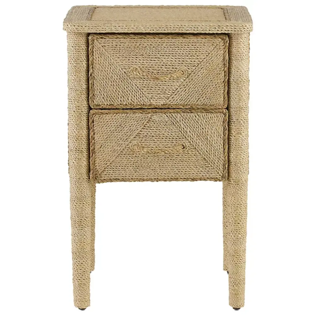 Introduce Bohemian charm into your bedroom with the Kaipo Nightstand from Currey & Company. This nightstand features a streamlined, geometric design. With two drawers, it offers ample storage for your bedside essentials, while the smooth ball-bearing drawer slides ensure effortless access. Crafted from abaca rope and engineered hardwood, the nightstand exudes a coastal allure that complements your Bohemian-inspired decor. The adjustable glides beneath the legs provide stability and convenience.