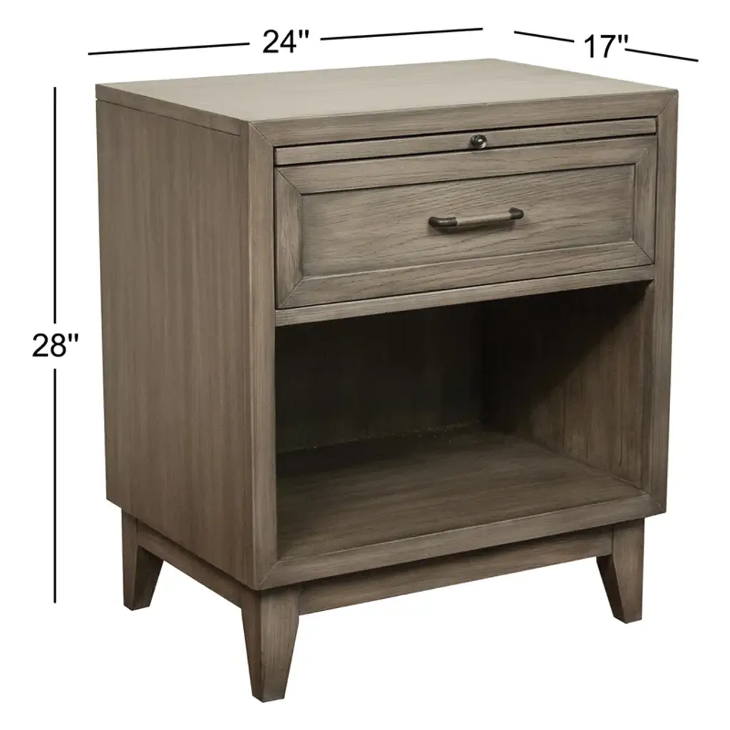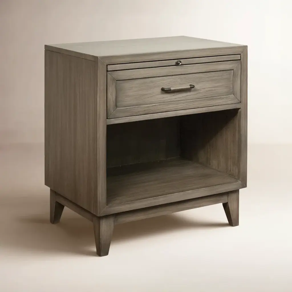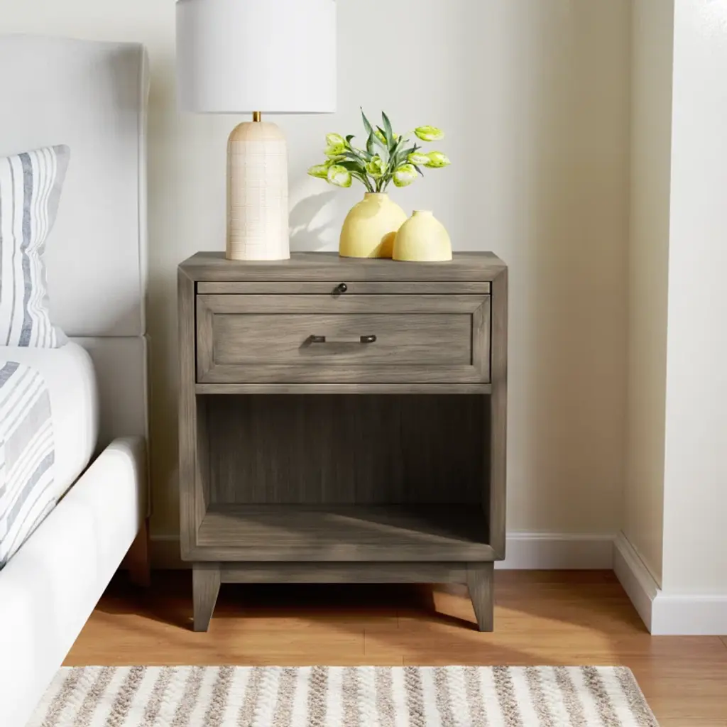 More than just a platform to perch reading lamps, glasses of water, and alarm clocks, nightstands help define the overall aesthetic in your guest bedroom or master suite ensemble. Take this one for example: Crafted from a blend of solid and manufactured wood, it strikes a clean-lined silhouette and boasts a neutral gray wash finish that complements nearly any color palette. Plus, it includes one drawer and an open shelf to help keep clutter to a minimum.