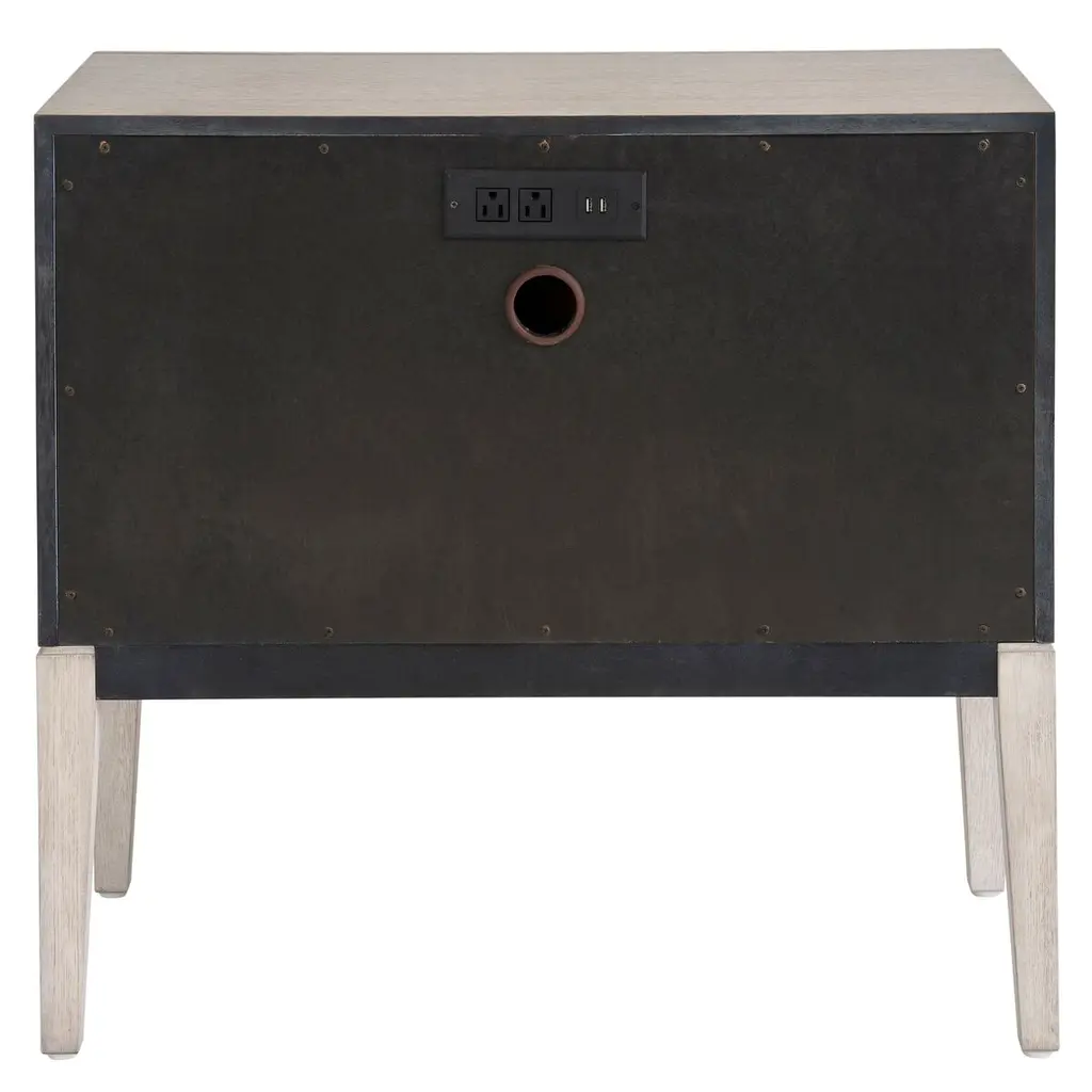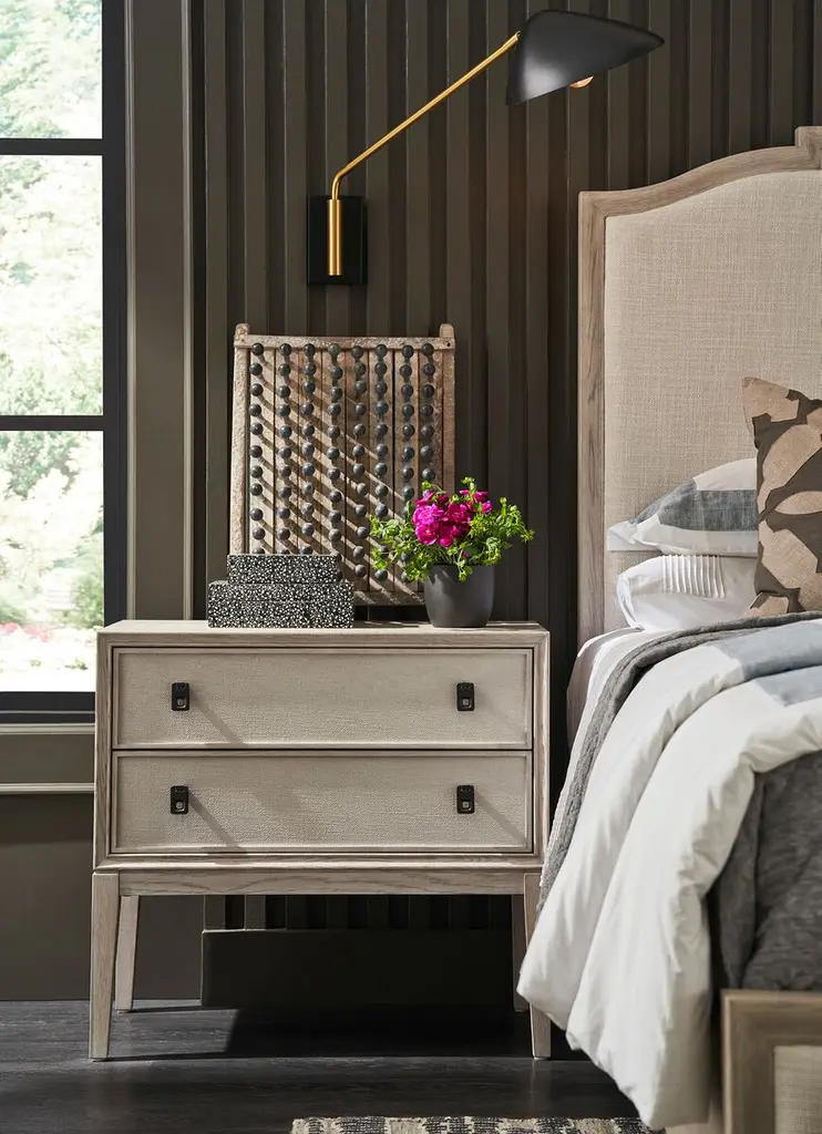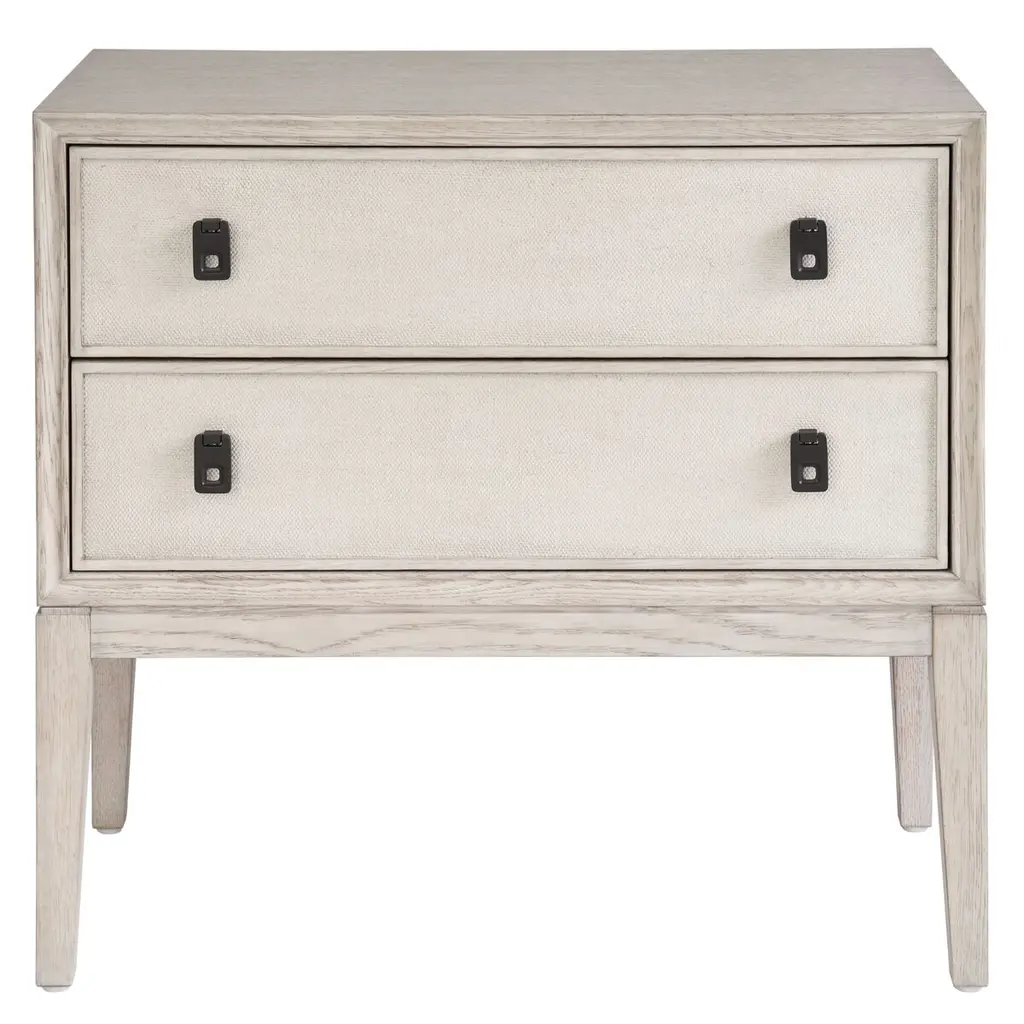 The Kieran Nightstand offers a touch of understated luxury with its two spacious drawers, complemented by the textured sophistication of flat linen drawer fronts.