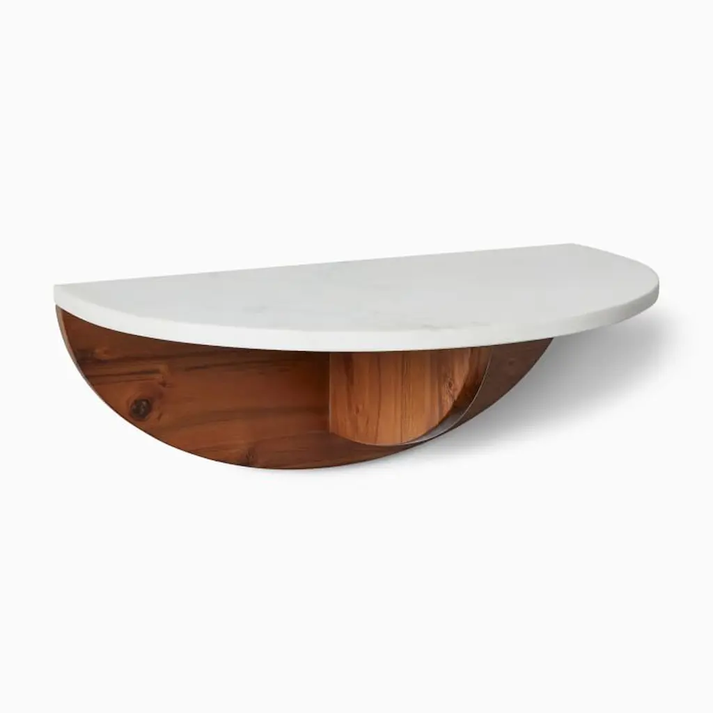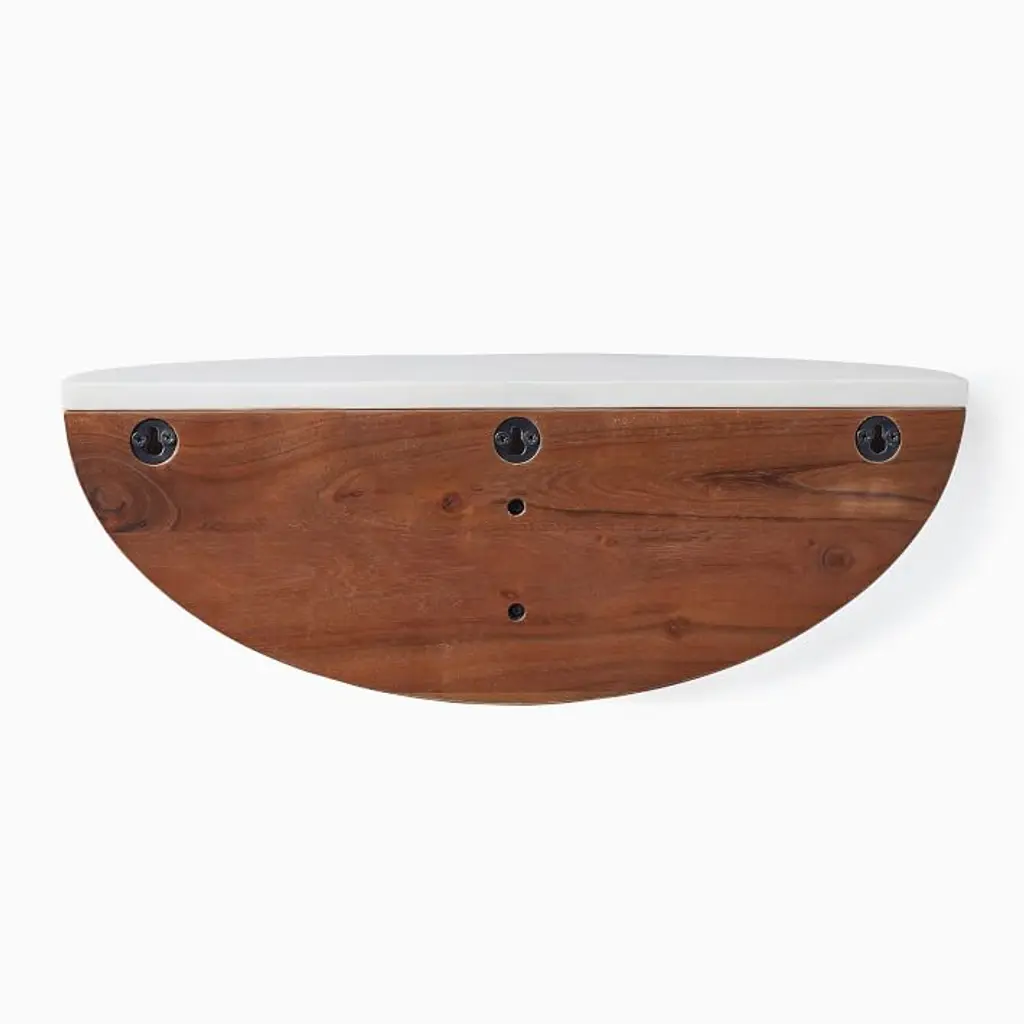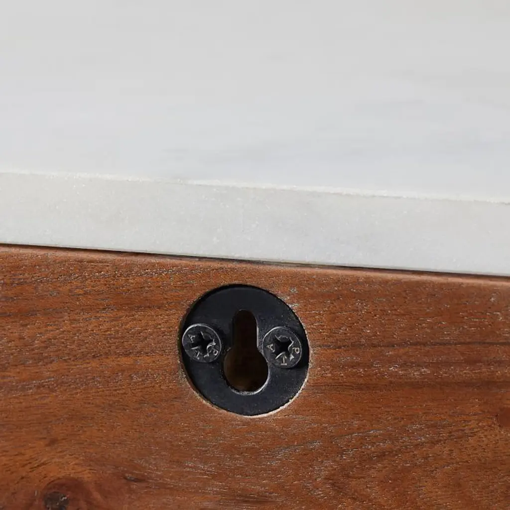 Frame and back: Solid acacia wood in a Cool Walnut finish. Top: Solid acacia wood in a Cool Walnut finish or white marble. All wood is kiln-dried for added durability. Mounting hardware included. Made in a Fair Trade Certified™ factory, empowering workers who made it. Made in India.