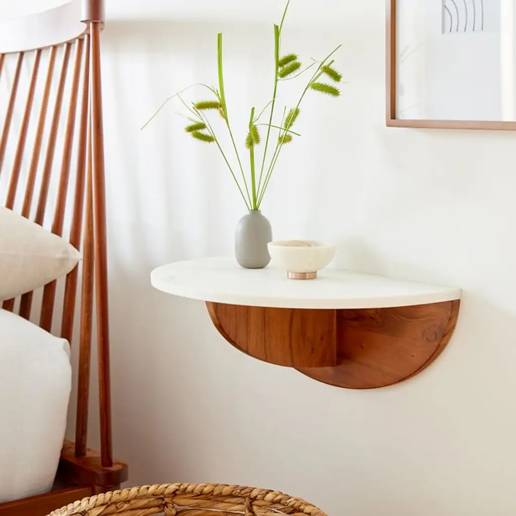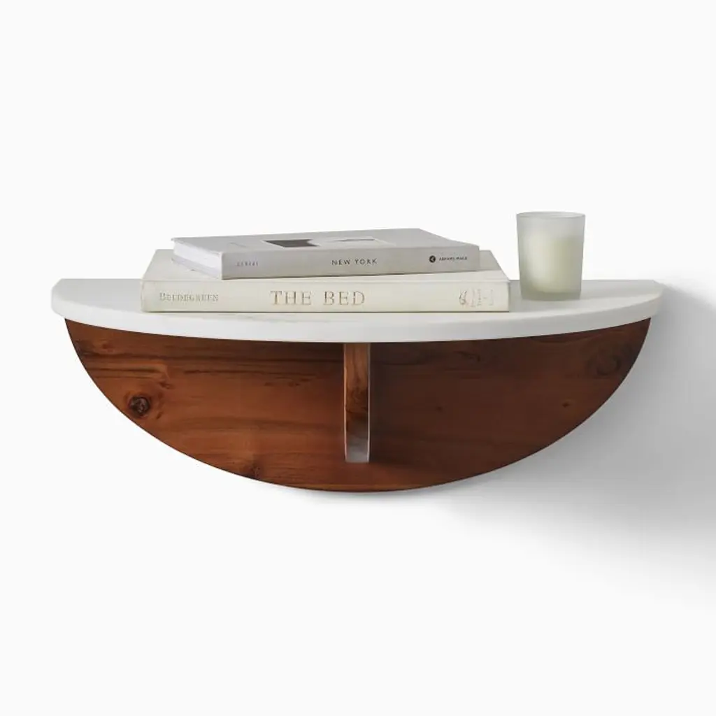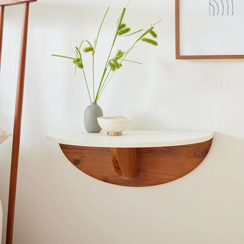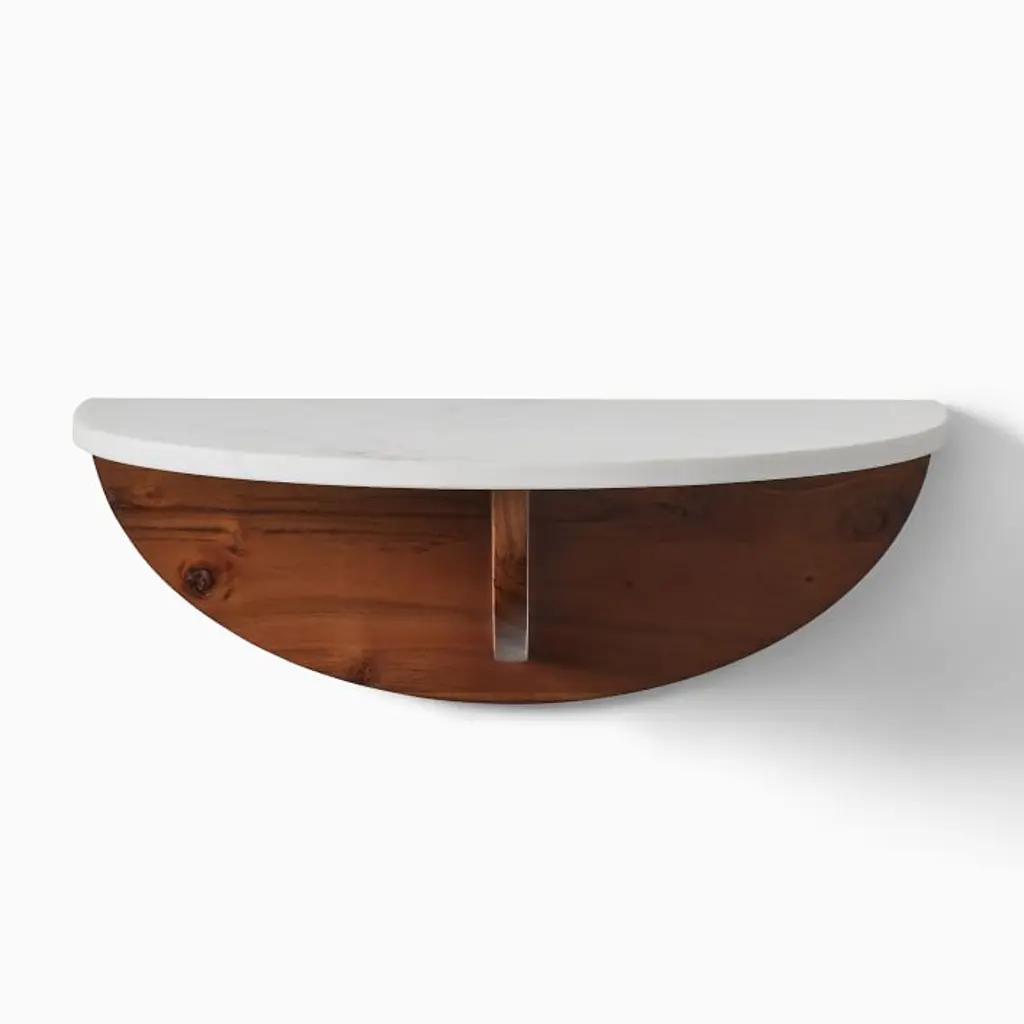 Frame and back: Solid acacia wood in a Cool Walnut finish. Top: Solid acacia wood in a Cool Walnut finish or white marble. All wood is kiln-dried for added durability. Mounting hardware included. Made in a Fair Trade Certified™ factory, empowering workers who made it. Made in India.