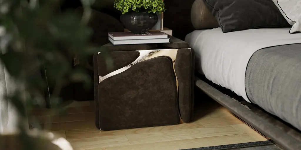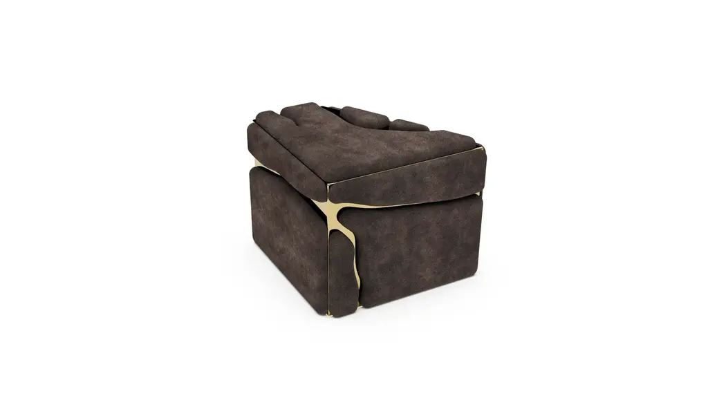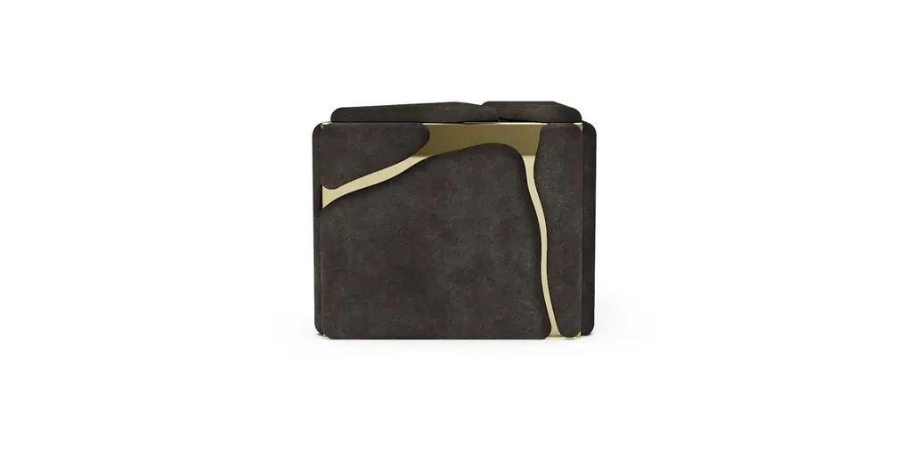 Inspired by the art of repairing ceramics with gold lines, alma de luce® presents the kintsukuroi nightstand which is graced with elegant broken lines in metal frieze with brass finish in the middle of the suede upholstery. This unexpected combination of materials lends exclusive style and appeal to this companion nightstand for the bedroom in perfect coordination for the kintsukuroi bed.