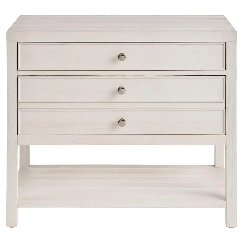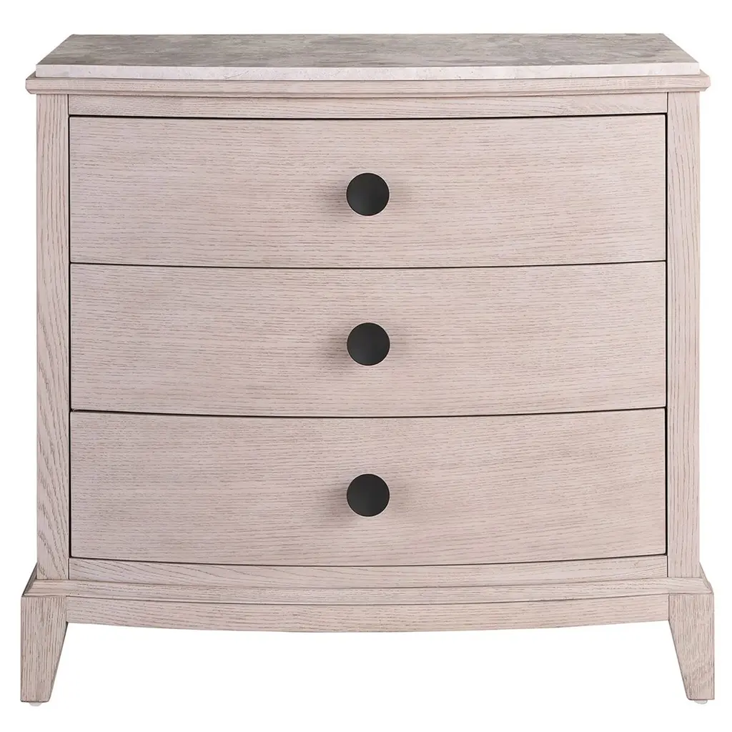 With its three spacious drawers and durable stone top, the Kyna Nightstand is a testament to versatility, available in two finish selections to beautifully complement any bedroom decor while offering ample bedside storage.