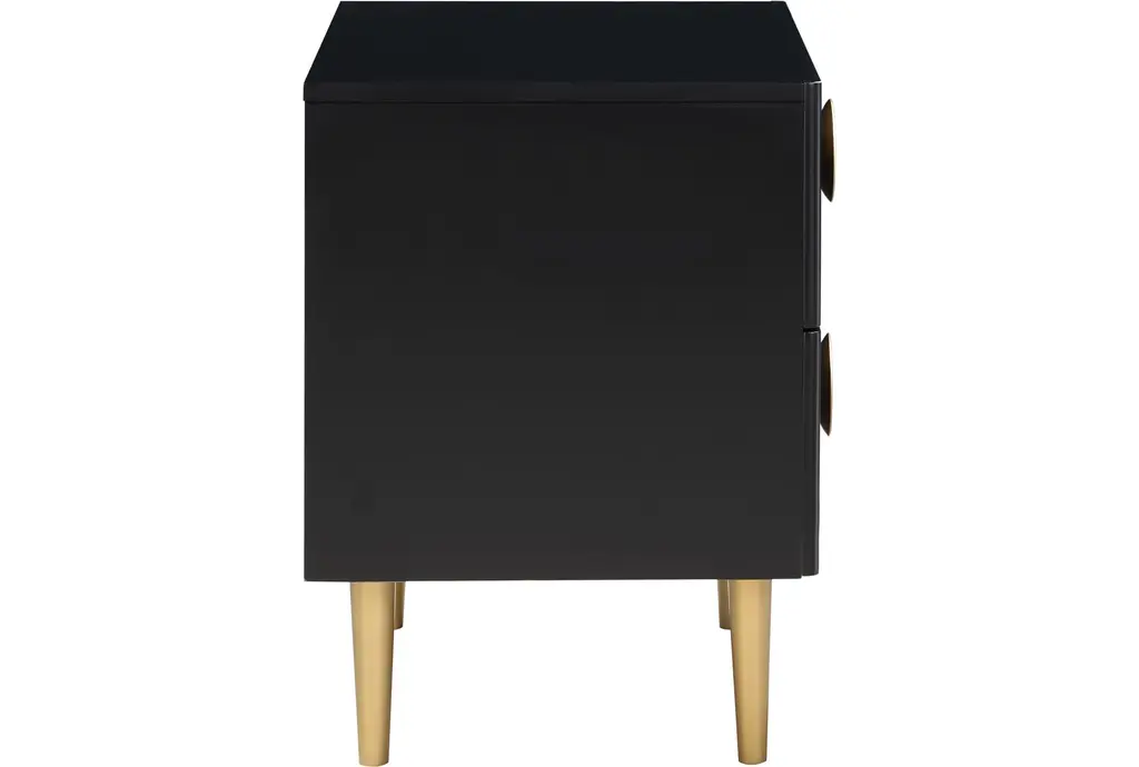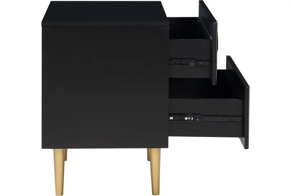 The Kynthos Black Metal 2-Drawer Bedside Table Nightstand is a stylish and functional addition to any bedroom. Featuring a modern design, this nightstand combines black metal and engineered wood for durability and aesthetic appeal. With two spacious drawers, it offers ample storage for your bedside essentials.
