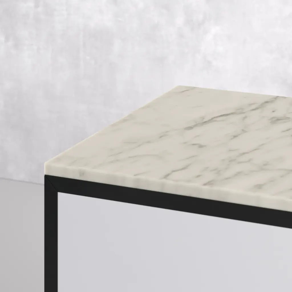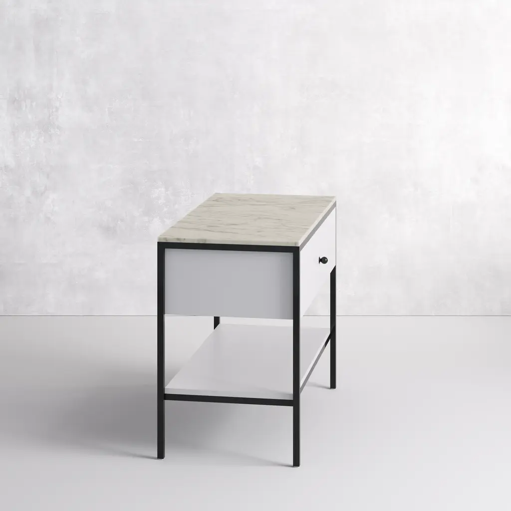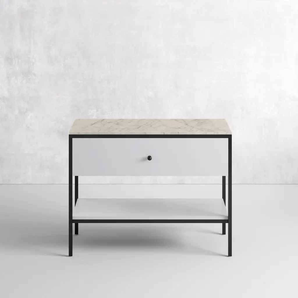Brass details contrast the chic marble surface of this single drawer accent piece. Our La Brea nightstand is suitable for both traditional and trendy atmospheres. With a width that's reminiscent of Mid-century furniture, this piece narrowly veers away from a retro look with its modern materials and contrasting height. With one drawer and parallel shelf, this expansive nightstand is as functional as it is attractive. Suitable for a hotel suite or your master bedroom, experience the visual impact of our La Brea nightstand. Dimensions: 36.0''W x 18.0''D x 28.0''H Tear Sheet