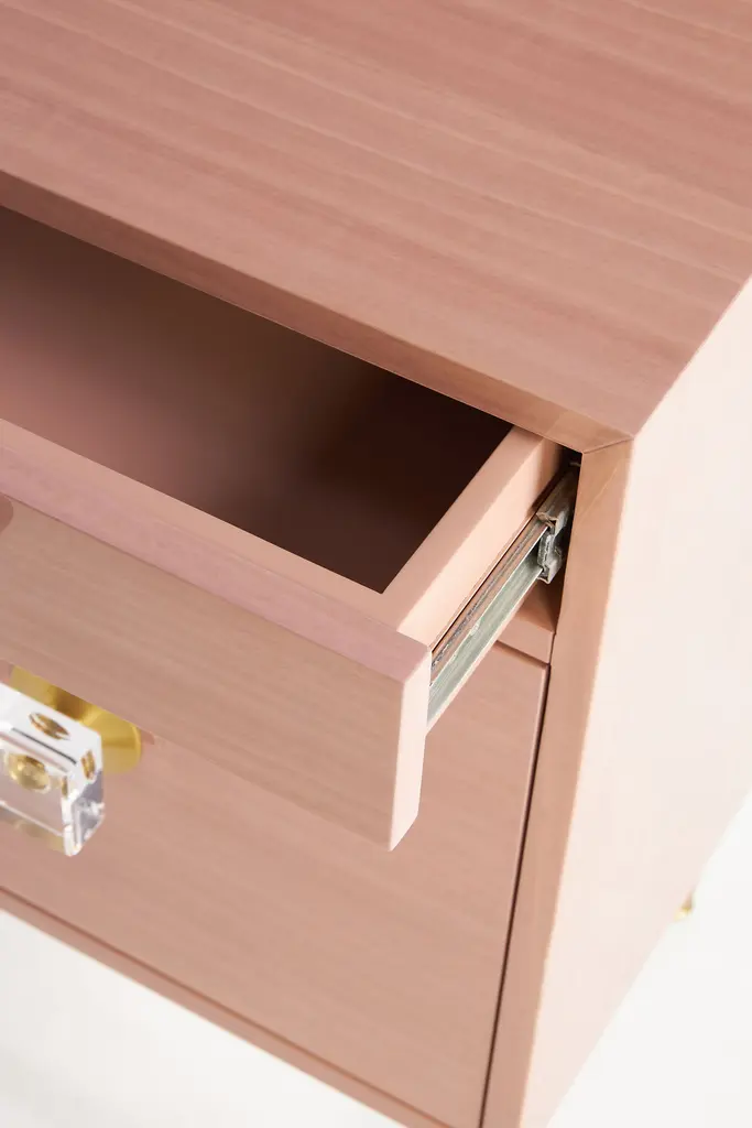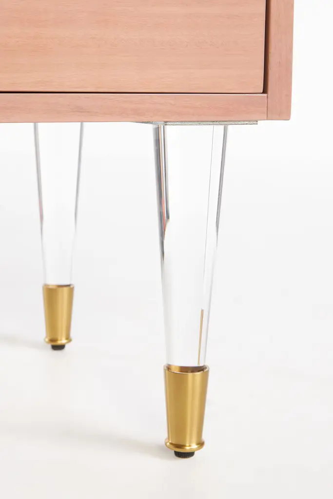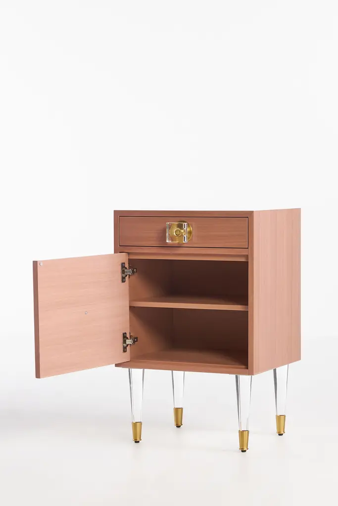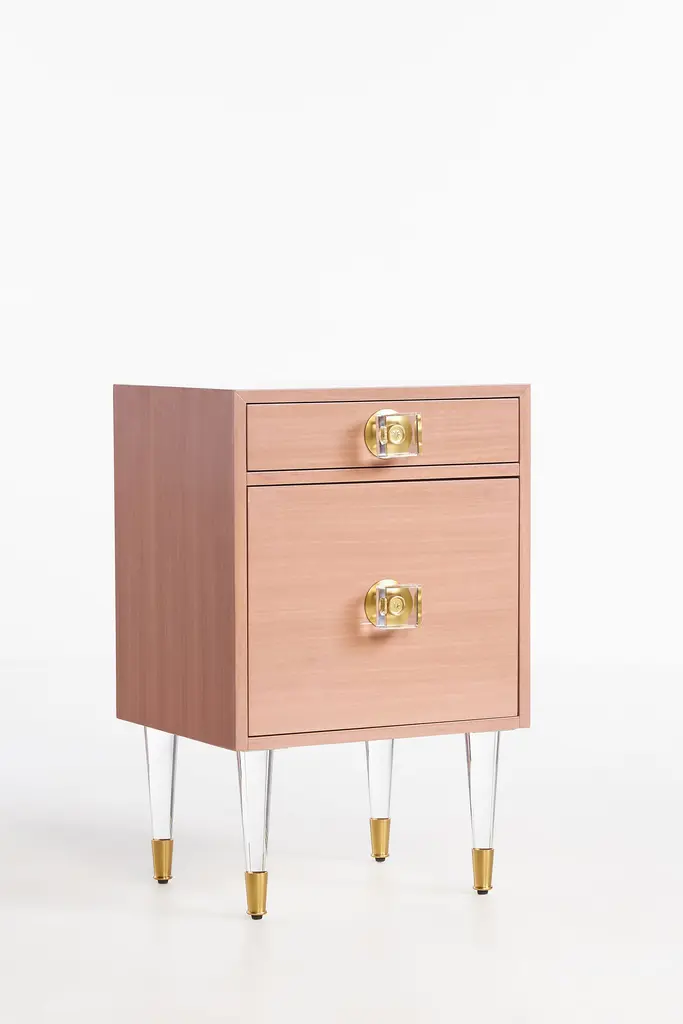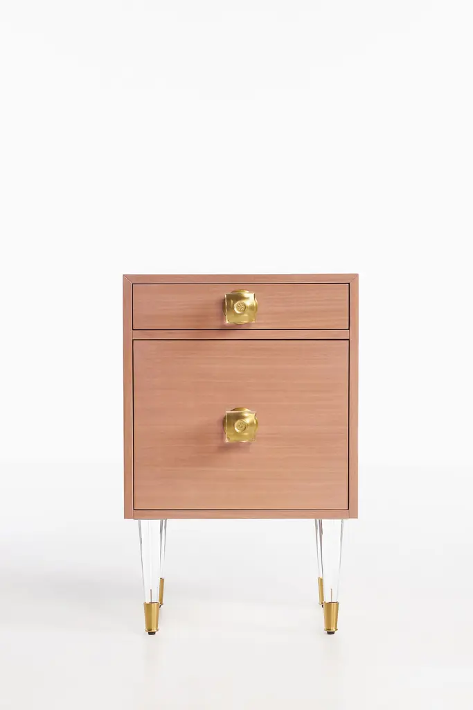 Designed around the retro glamour of its lucite and etched brass pulls, The Lacquered Regency collection is hallmarked by a high-gloss lacquer finish that's the result of a five-day sanding, coating, and curing process. From its gleaming facade to its crystalline lucite legs, the dramatic details of this nightstand marries modernity with a familiar silhouette.About Tracey Boyd Whether drawing inspiration from her extensive travels or tapping into her background in fashion, Tracey Boydâs furniture collections for Anthropologie exude an expertise in color, craftsmanship, and unexpected detail. Learn more about her signature techniques in our interview with this celebrated designer.For ordering assistance and more, please contact us. For aesthetic advice and tips to help decorate your space, enjoy our complimentary home styling services.