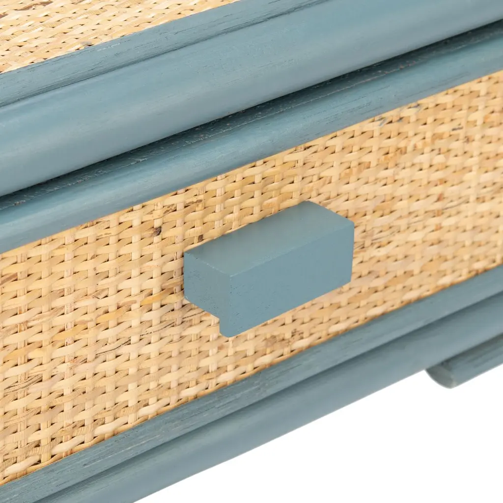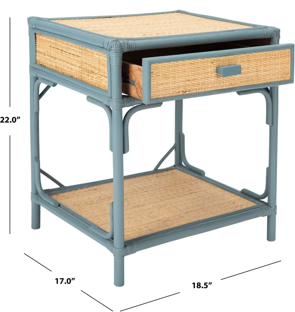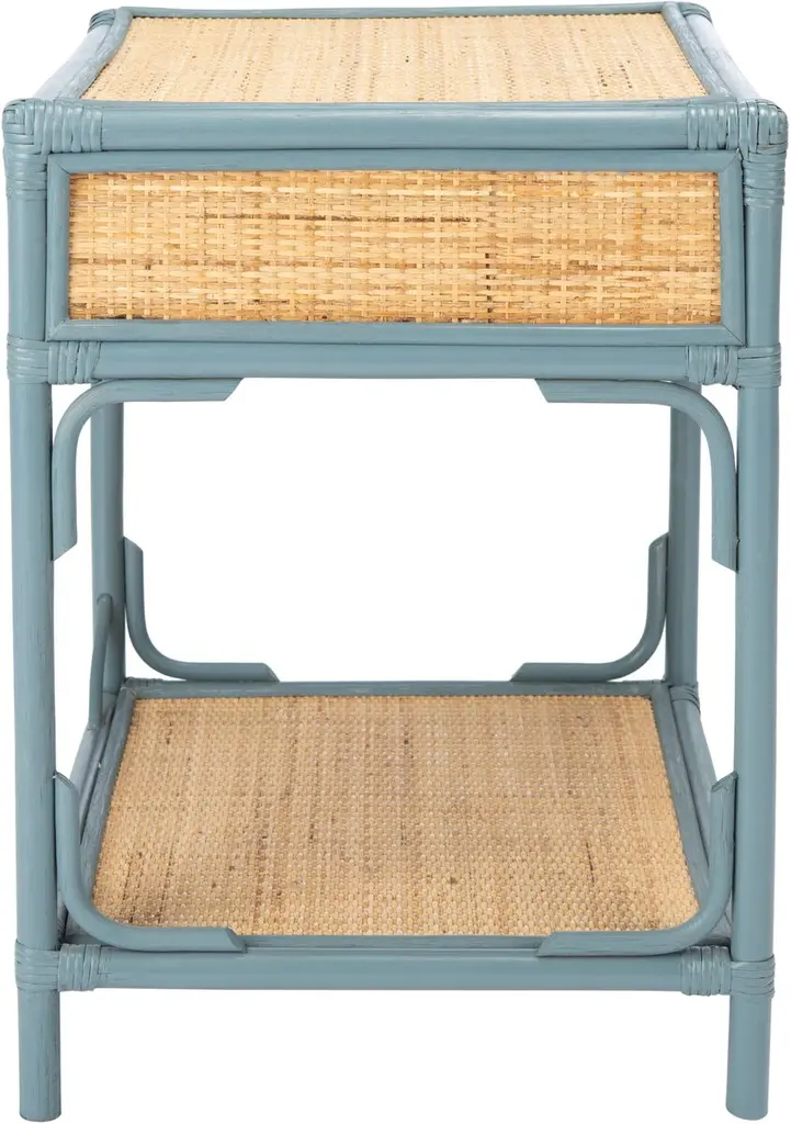 Panels crafted of tightly woven rattan, as well as rattan bindings around the joints, give this wooden nightstand tropical elegance. Along with a drawer, the nightstand includes a bottom shelf for additional storage or to display a favorite object.