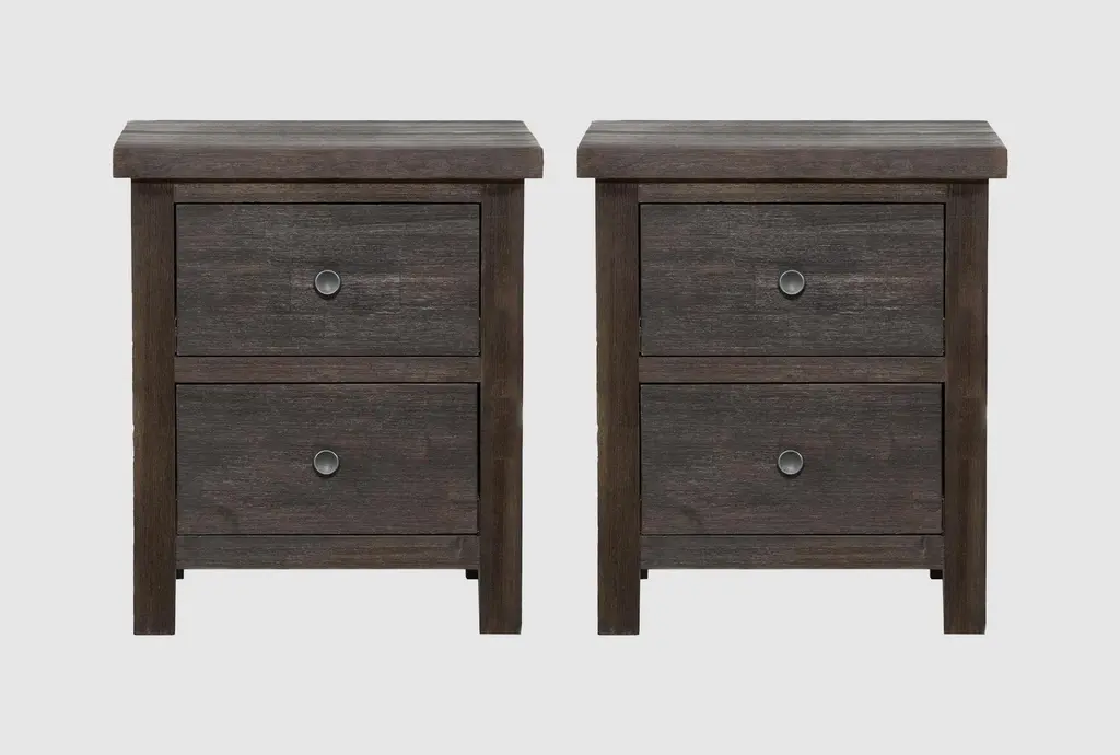 Larkin Black Espresso Brown Wood 2-Drawer Nightstand Set Of 2 | Pine