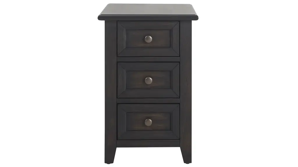 Our Larkin Espresso nightstand brings simplicity, versatility and ease to your space for less with its streamlined design. This rich espresso piece features solid New Zealand pine, and it boasts a 5-step wire-brushed finish and custom antiqued metal handles. The full-depth drawers with ball-bearing glides ensure reliable, roomy storage for essentials.