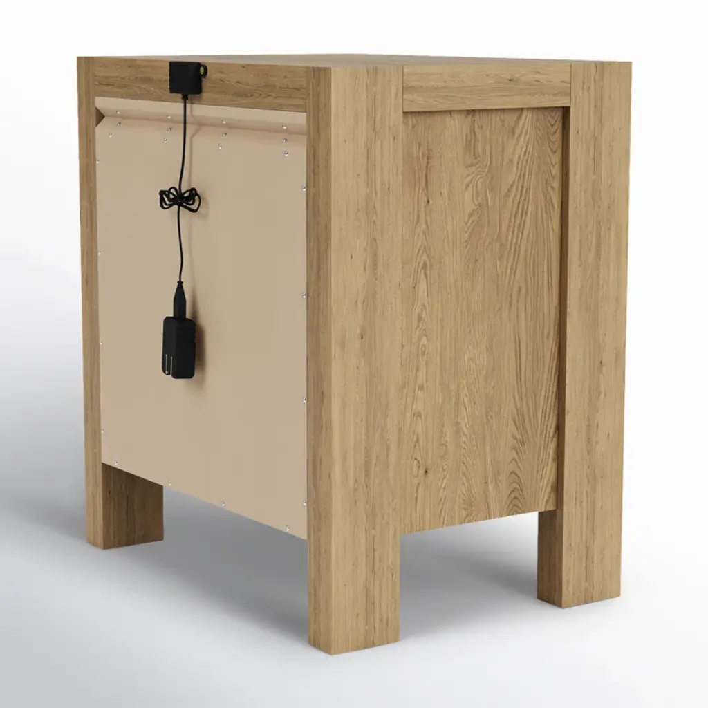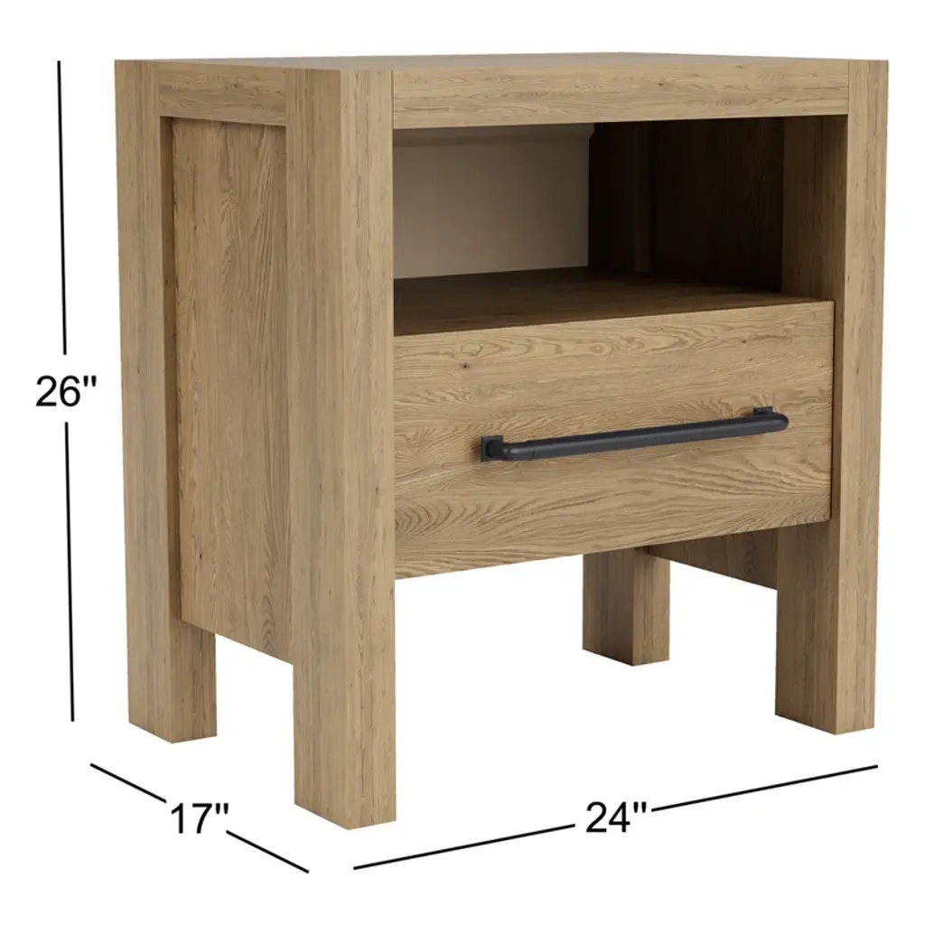 This bedside table has a streamlined silhouette along with an open cubby and lower shelf for your nighttime essentials and stack of must-reads. Plus, you’ll appreciate the included USB ports that charge up devices while you sleep. Crafted from kiln-dried solid and engineered wood, it’s finished in a warm hue that’s an easy match to most color palettes. Consider a pair for either side of your bed for a cohesive look.