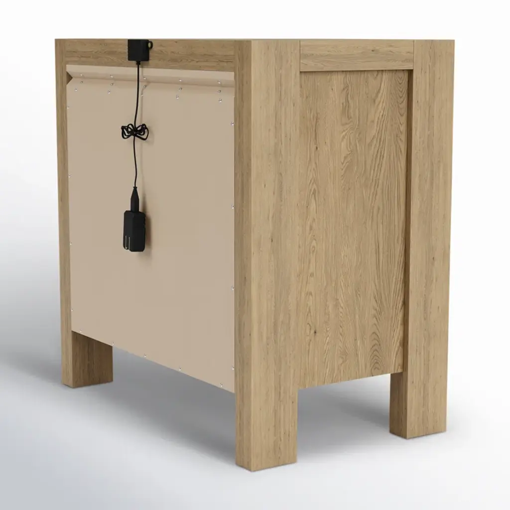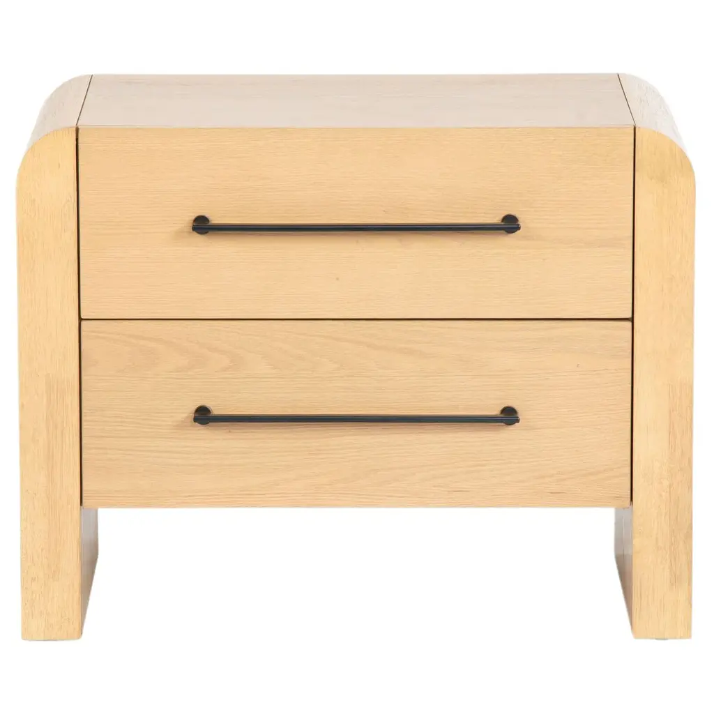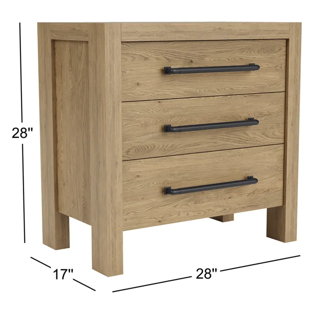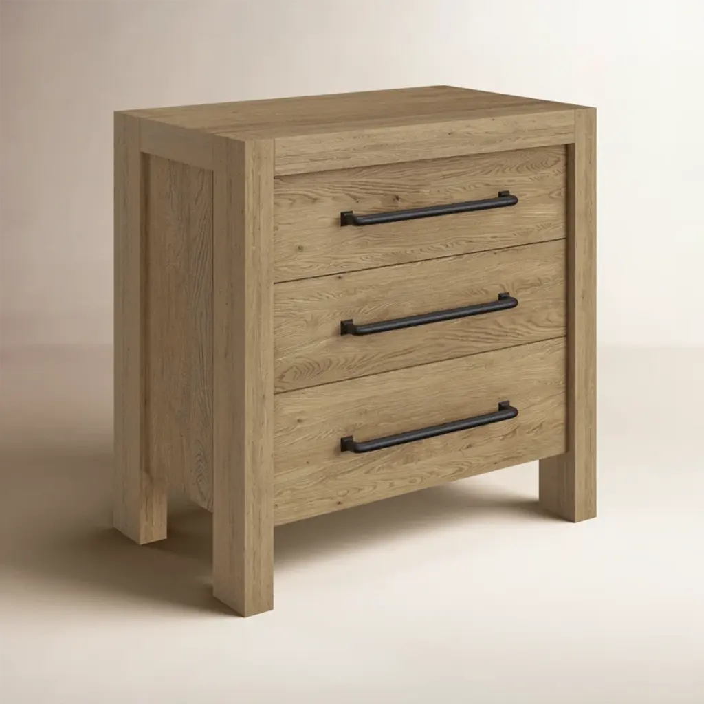 This nightstand is crafted from kiln-dried solid and engineered wood with a warm finish that highlights knotty accents and natural grain variation for a rustic vibe. You’ll appreciate the drawers for all your bedtime essentials, and also the built-in USB port for your devices. Consider a pair for either side of your bed.