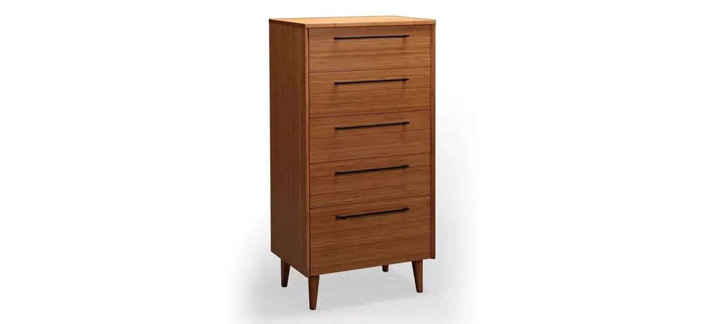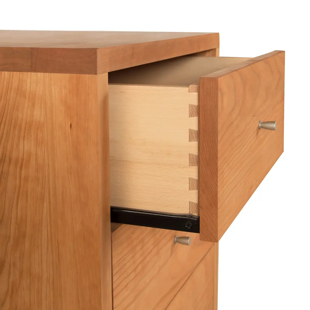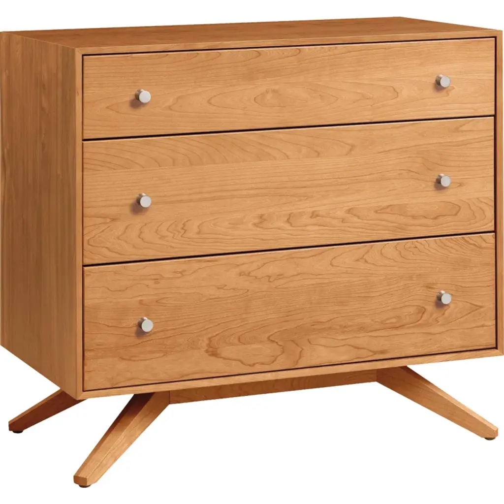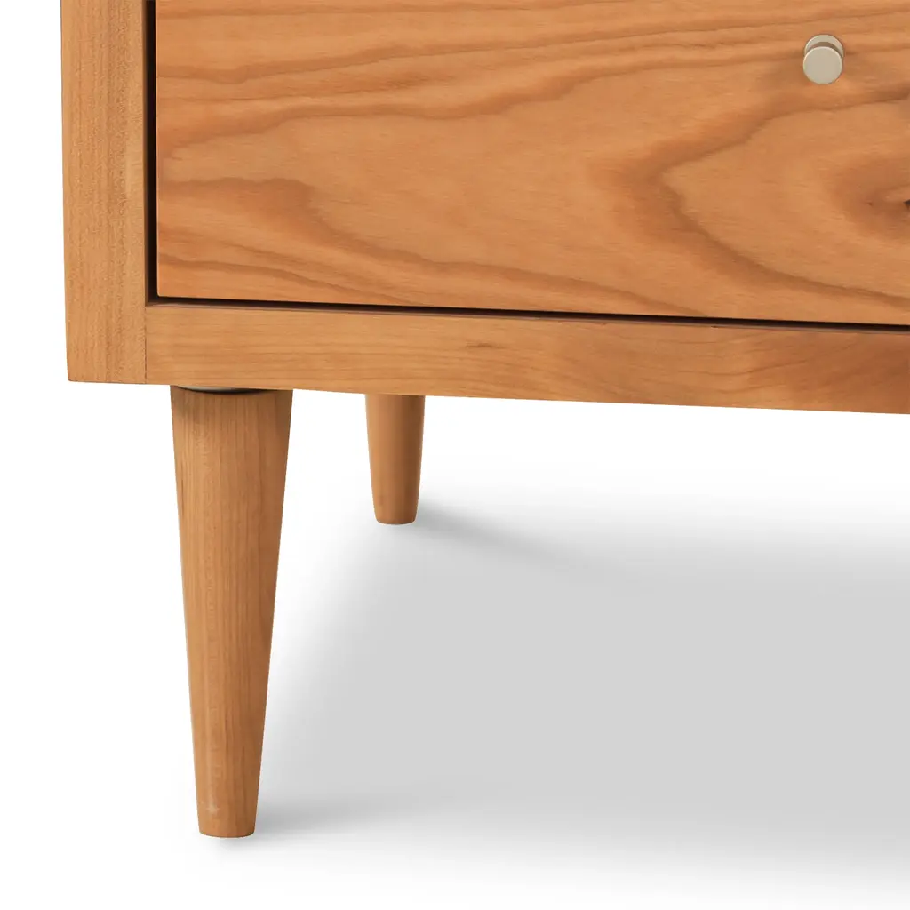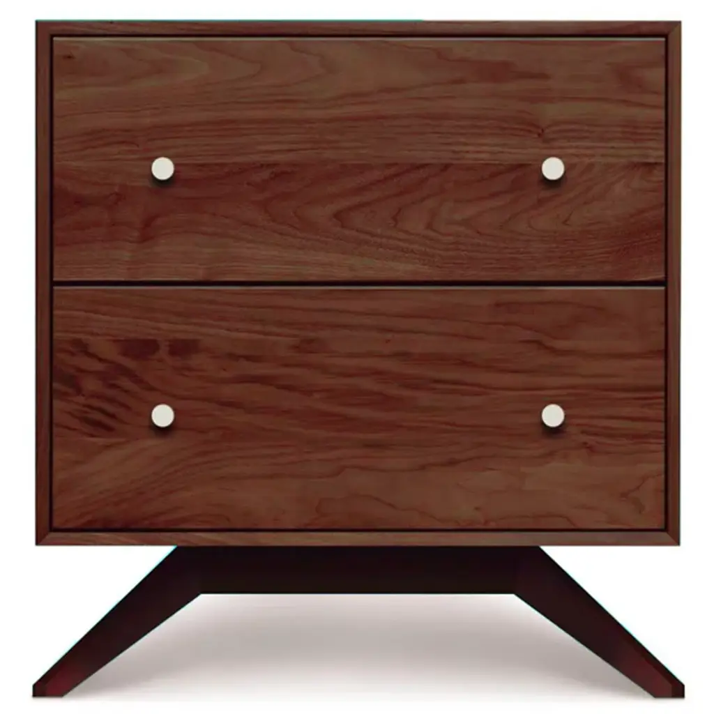 Following the same mid-century modern design of our Larssen Bed, our Larssen Nightstand features precision angles finely tailored in solid natural hardwoods. A solid right-angled form is creatively offset by delicate rounded tapered legs. Add a contemporary brushed nickel drawer knob and the look is complete. Place this nightstand, beside your own Larssen Bed and enjoy the comfort and convenience it will provide for many years to come.Base price represents nightstand in natural cherryShown in natural cherryMatching furniture available in our Larssen Furniture Collection