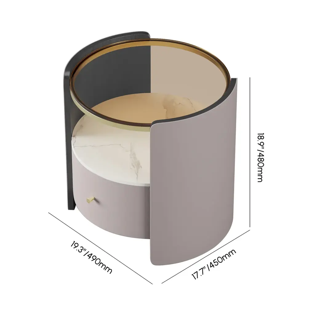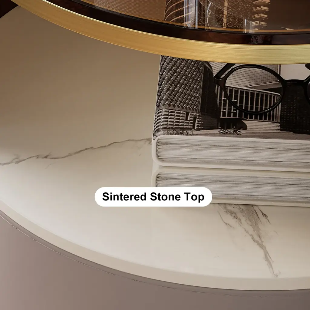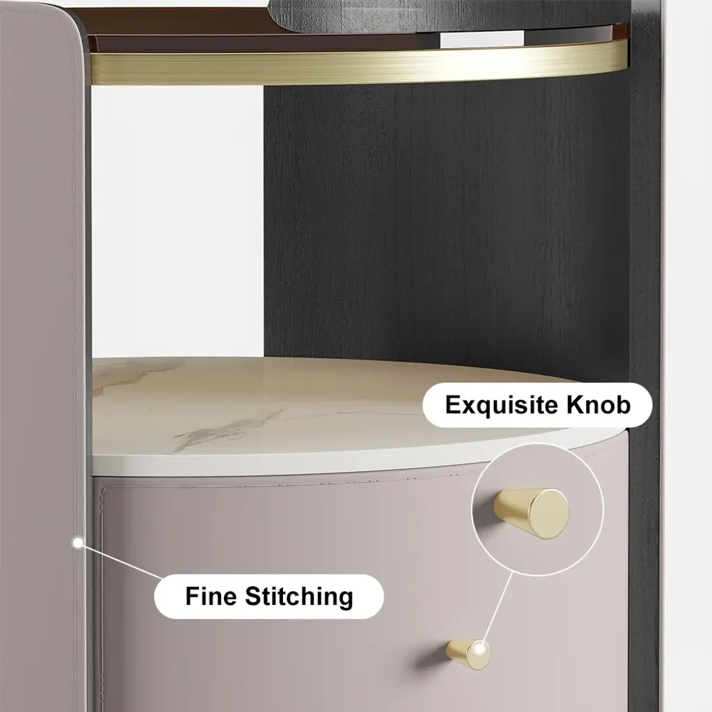 Leather & Sintered Stone Round Nightstand With Glass Top Set Of 2
