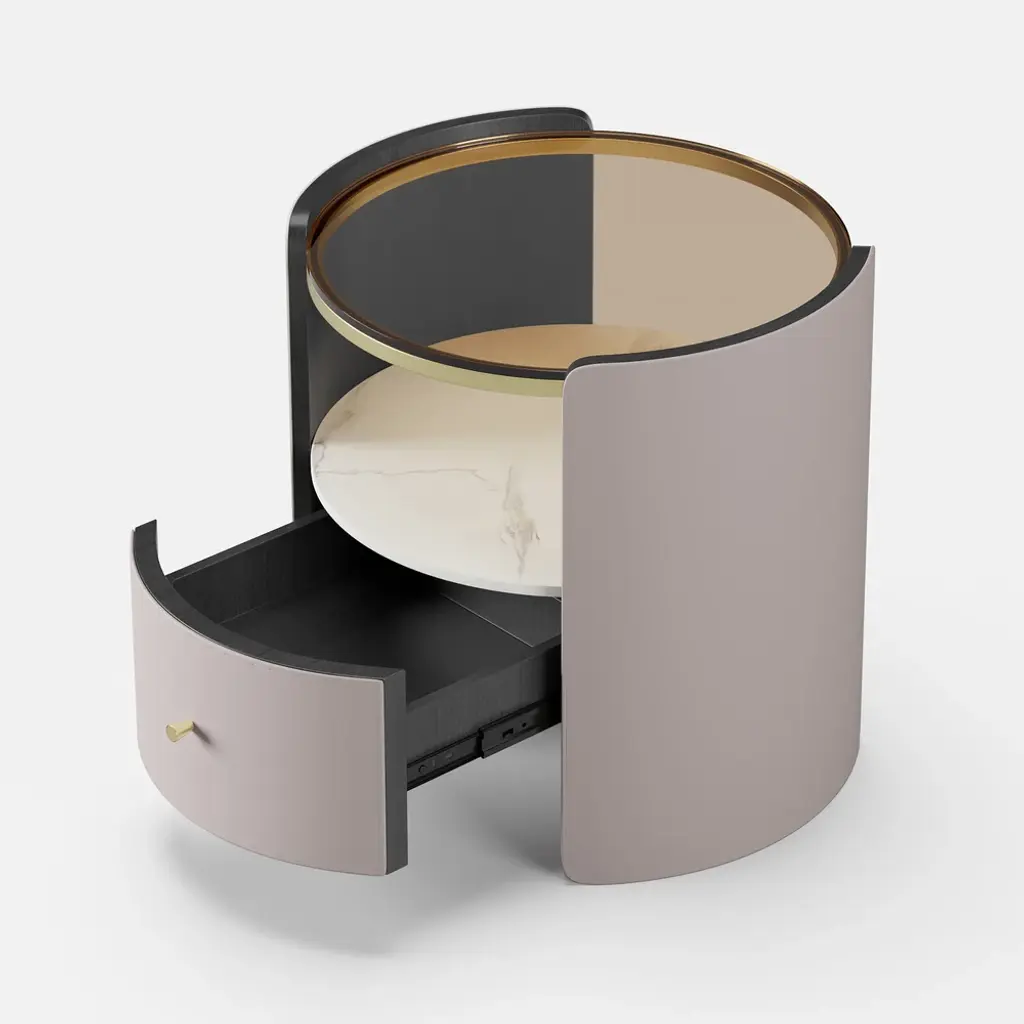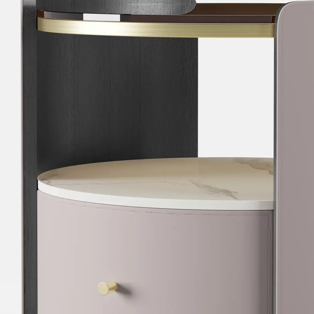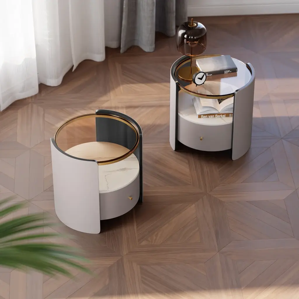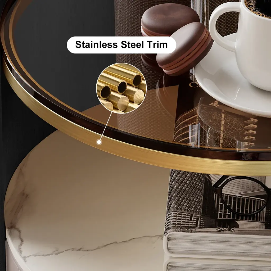Leather & Sintered Stone Round Nightstand With Glass Top Set Of 2