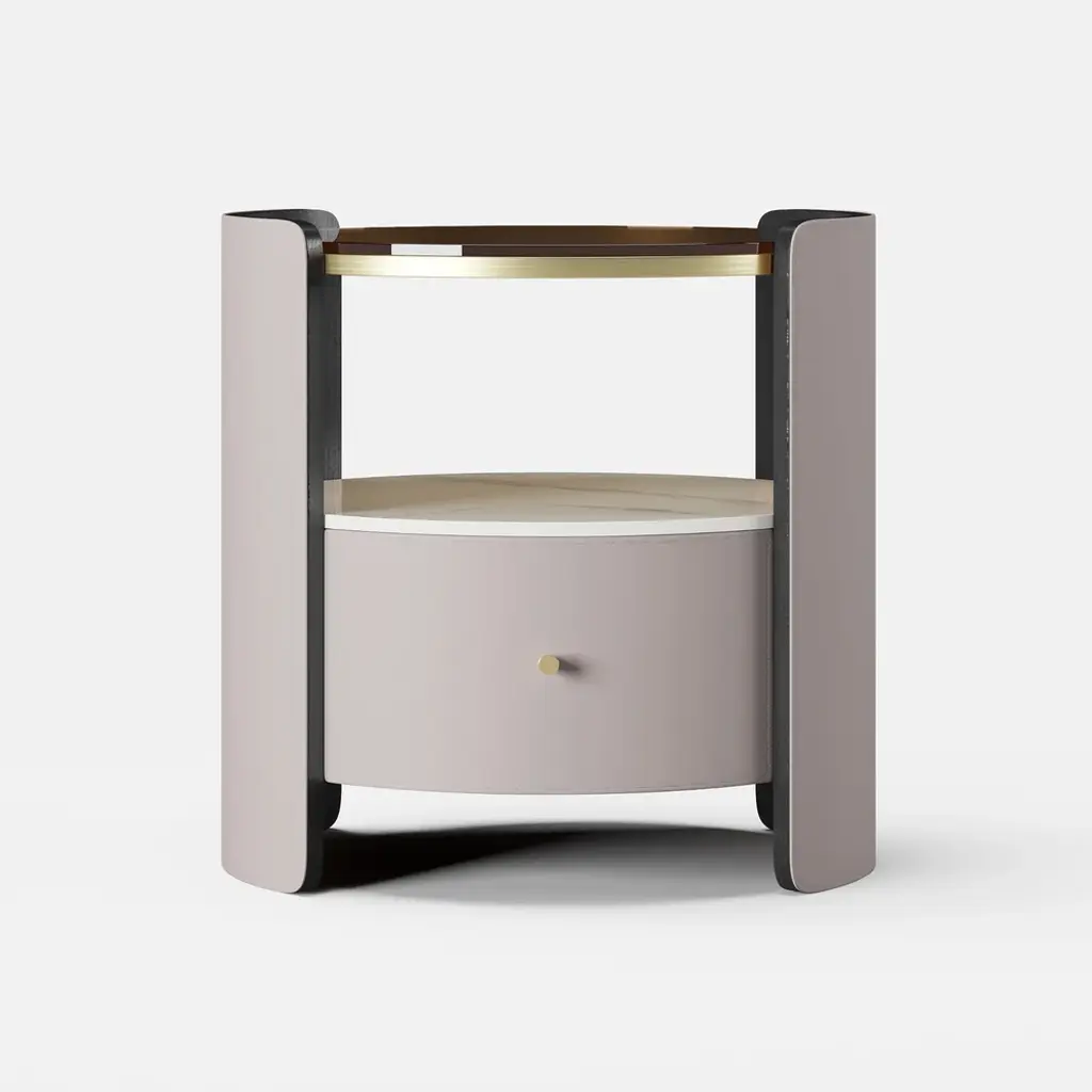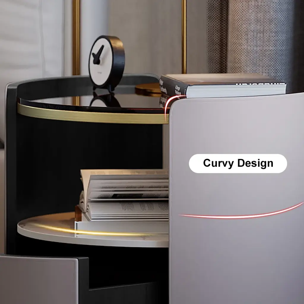 Immerse yourself in the allure of our captivating nightstand, where sophisticated modernity blends seamlessly with luxurious craftsmanship. This exceptional piece redefines elegance and elevates your living space to unprecedented heights of style and class. 【Innovative Material Fusion】The nightstand boasts an innovative material fusion that sets it apart from the ordinary. A sleek glass top exudes contemporary allure, while the sintered stone shelving lends a sense of natural beauty and durability. Luxurious leather accents complete the ensemble, elevating its appeal with a touch of opulence. 【Unmatched Functionality】Not just a sight to behold, this nightstand embraces functionality at its core. The spacious glass top provides a perfect spot for your bedtime essentials, while the sintered stone shelving offers robust support and stability. Store your treasured possessions in its discreet leather-covered drawer, keeping your space clutter-free and organized. 【Elegance Meets Durability】With its stable construction, the nightstand marries elegance with unwavering durability. Resistant to scratches, heat, and moisture, it ensures longevity without compromising on aesthetics. Its timeless design allows you to enjoy a piece of art that stands the test of time.
