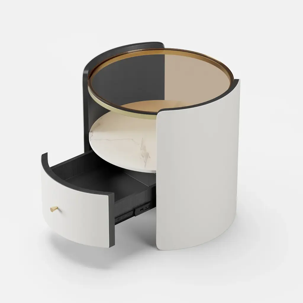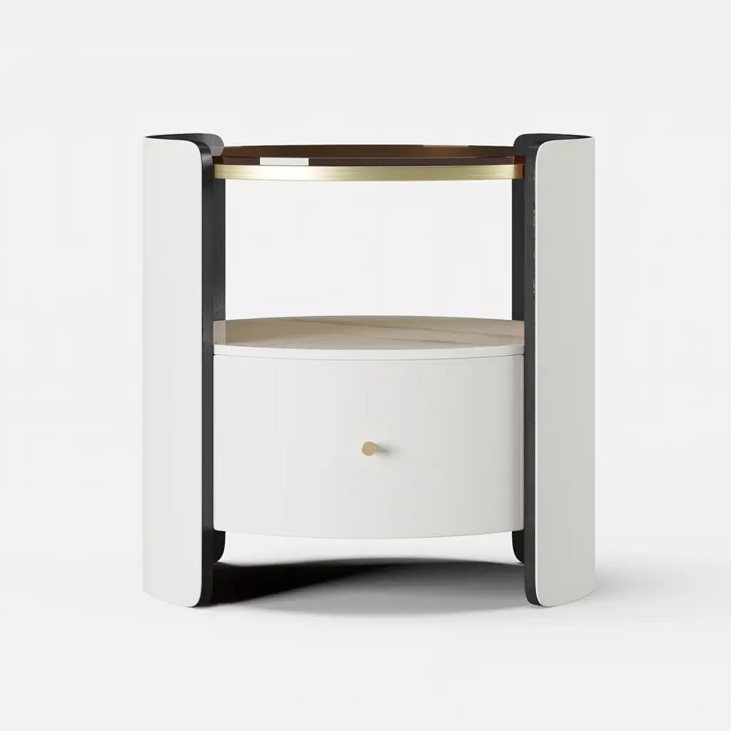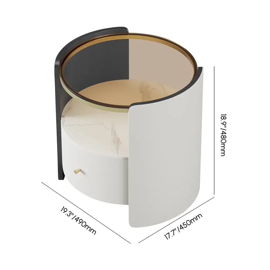 Immerse yourself in the allure of our captivating nightstand, where sophisticated modernity blends seamlessly with luxurious craftsmanship. This exceptional piece redefines elegance and elevates your living space to unprecedented heights of style and class. 【Innovative Material Fusion】The nightstand boasts an innovative material fusion that sets it apart from the ordinary. A sleek glass top exudes contemporary allure, while the sintered stone shelving lends a sense of natural beauty and durability. Luxurious leather accents complete the ensemble, elevating its appeal with a touch of opulence. 【Unmatched Functionality】Not just a sight to behold, this nightstand embraces functionality at its core. The spacious glass top provides a perfect spot for your bedtime essentials, while the sintered stone shelving offers robust support and stability. Store your treasured possessions in its discreet leather-covered drawer, keeping your space clutter-free and organized. 【Elegance Meets Durability】With its stable construction, the nightstand marries elegance with unwavering durability. Resistant to scratches, heat, and moisture, it ensures longevity without compromising on aesthetics. Its timeless design allows you to enjoy a piece of art that stands the test of time.