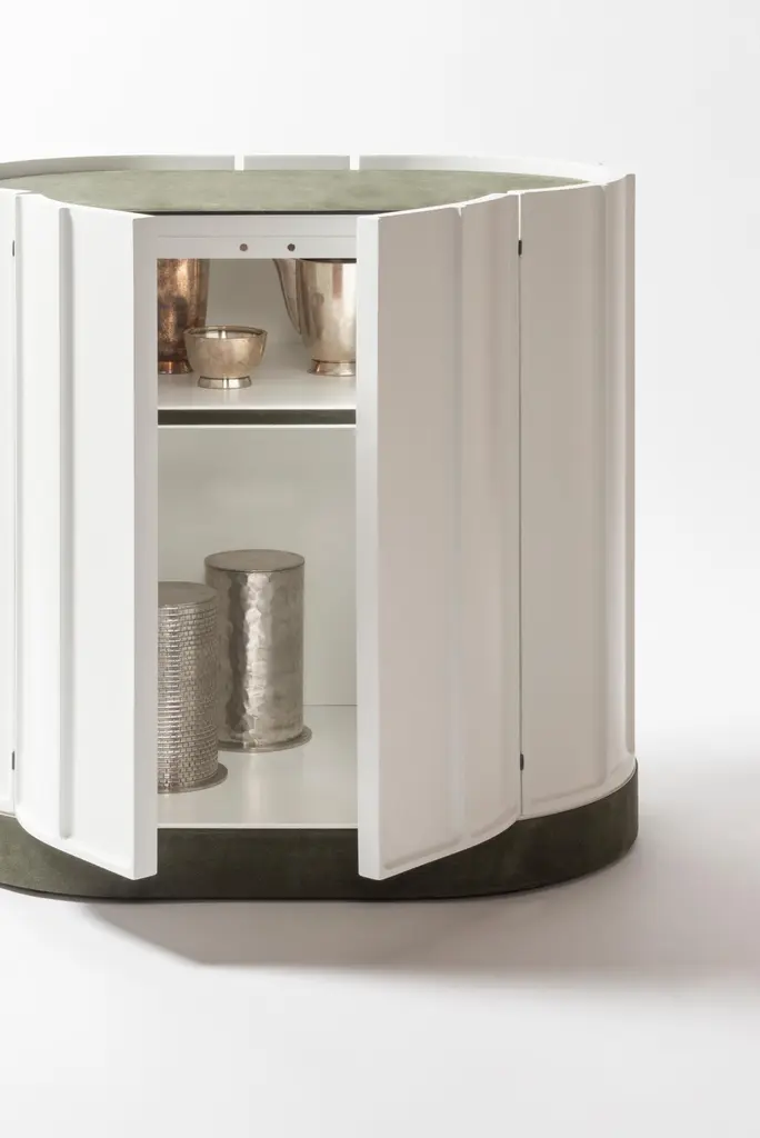 Novare Bedside Table -- Francesco Balzano x GiobagnaraAvailable in printed calfskin, suede, nappa finish. Wood lacquered finishing has to be indicated.For simple and sophisticated leather and marble products, look no further than the Francesco Balzano line. Born and raised in Paris, Francesco Balzano studied interior design and architecture before opening his own studio to design custom and limited editions of furniture pieces for galleries around the world. The influence of Venice, Rome, and Capri are omnipresent in many of Balzano’s products, which fashion simple elegance out of a carefully selected range of leather and marble colors and finishes. The monolithic seats, benches, and tables that comprise Balzano’s ossicle collection strike the perfect balance between organic and pure geometric shapes, thus offering contemporary luxury elevated by minimalism. The singularity of each design conceived as a sculptural piece is bound to stand the test of time. For nearly twenty years, the Giobagnara brand has combined traditional know-how and leading-edge technology to produce elegance of the highest standard. With luxurious creations available in a unique and virtually limitless color palette of leathers and suede, Giobagnara now boasts one of the most comprehensive offers of leather home accessories on the market.