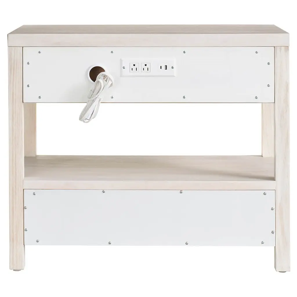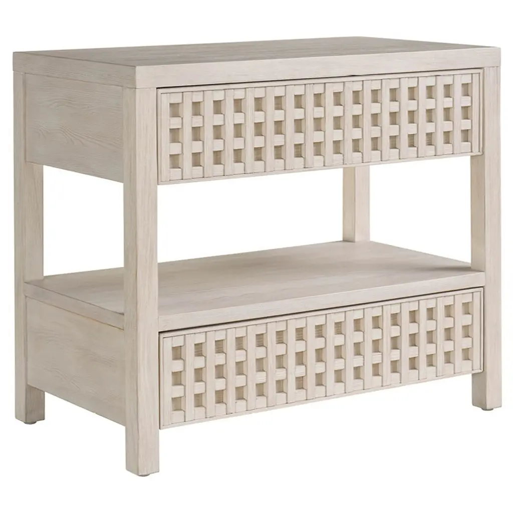 Leith Modern Classic Light Grey Wood Textured Wide Nightstand