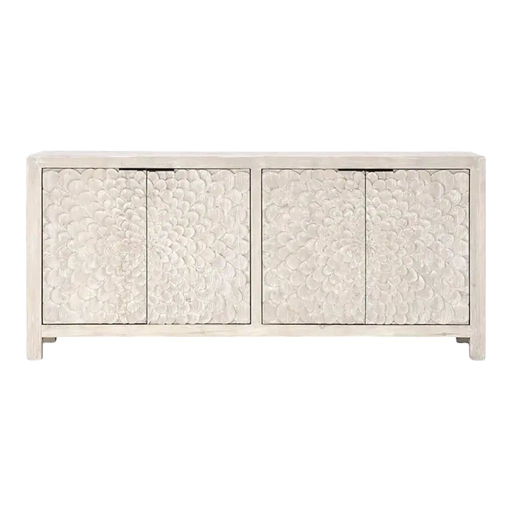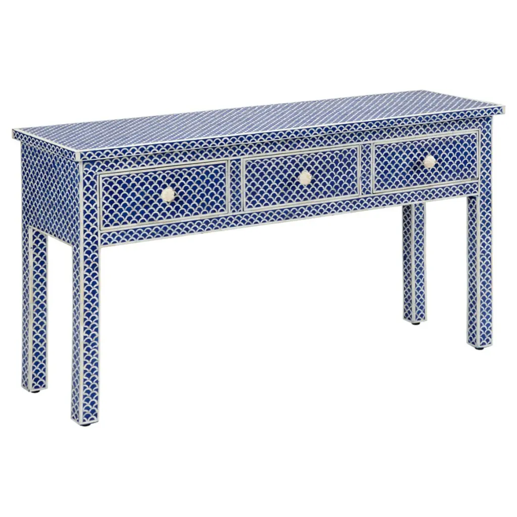 Inspired by an Indian pattern and modernized, this stunning nightstand is one of a kind. Featuring natural bone hand-set in white resin. Perfect for holding all of your bedside essentials while adding a global influence to your room.
