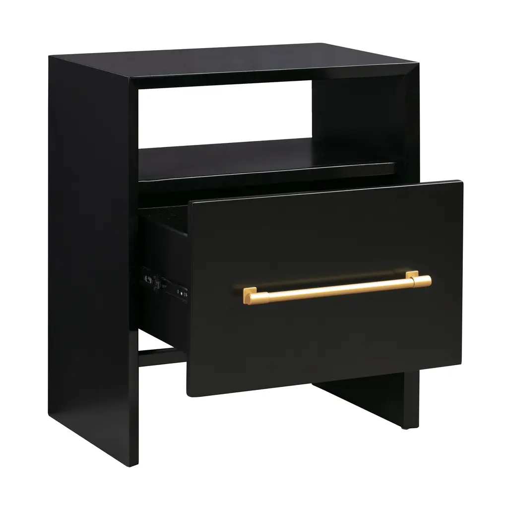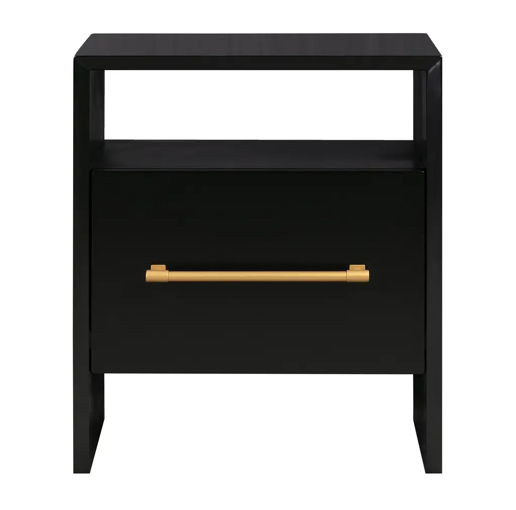 Stunning in its simplicity, this clean-lined nightstand modern appeal and stylish functionality. One drawer and a shelf above provide ample bedside storage. Available in two color options.