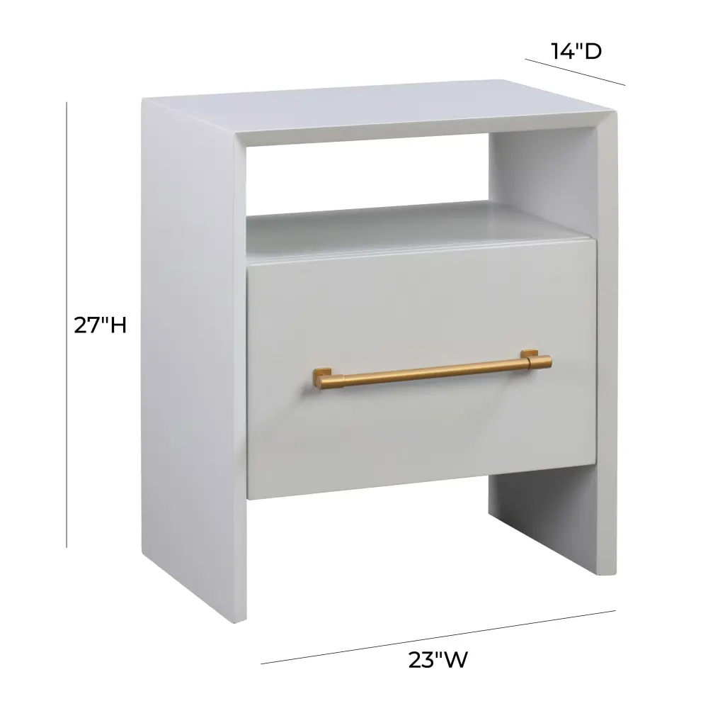 Stunning in its simplicity, this clean-lined nightstand modern appeal and stylish functionality. One drawer and a shelf above provide ample bedside storage. Available in two color options.