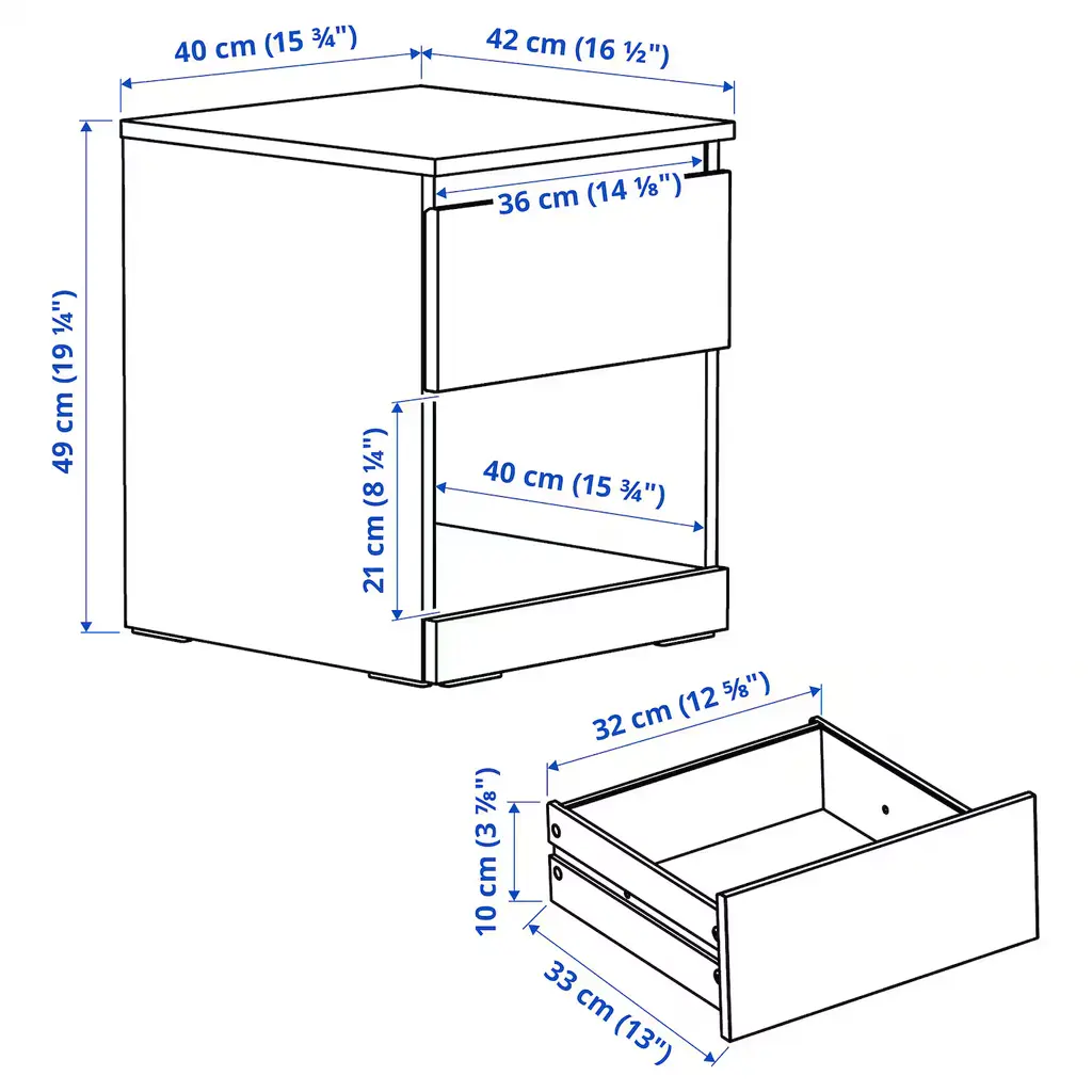 LILLBERGET Nightstand - white 15 3/4x16 1/2x19 1/4 ". The bedside table has a top shelf, a handy drawer and an open storage compartment. Everything you need to store items that you want close to the bed. Use the top panel for displaying or storing things.