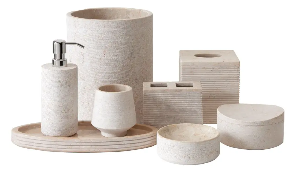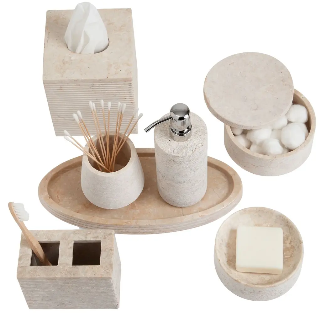 Crafted of smooth limestone, this lidded jar is ideal for holding everything from cotton balls to jewelry to paper clips. It will add organic elegance to your vanity, nightstand, or desk.